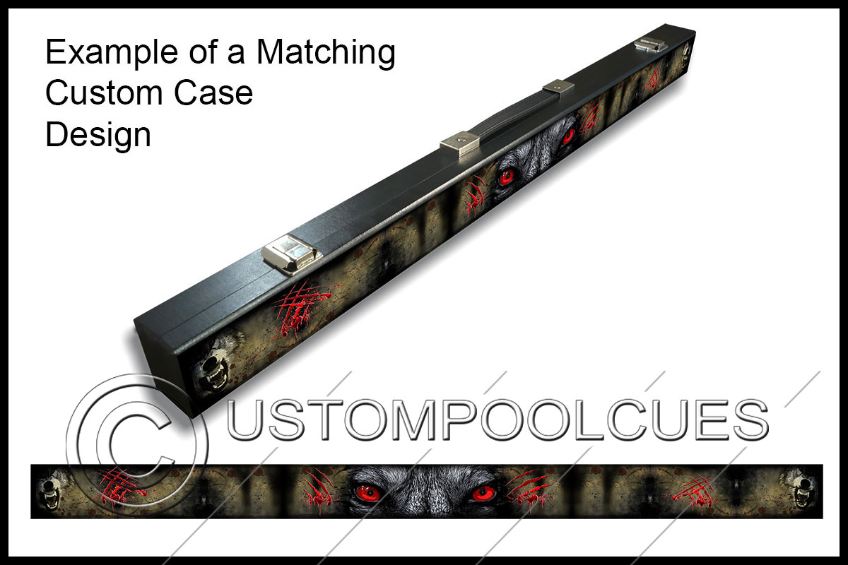 This printed vinyl design with additions will be applied & sealed to a quality tested 57″ two-piece ash cue with your chosen tip & weight options.