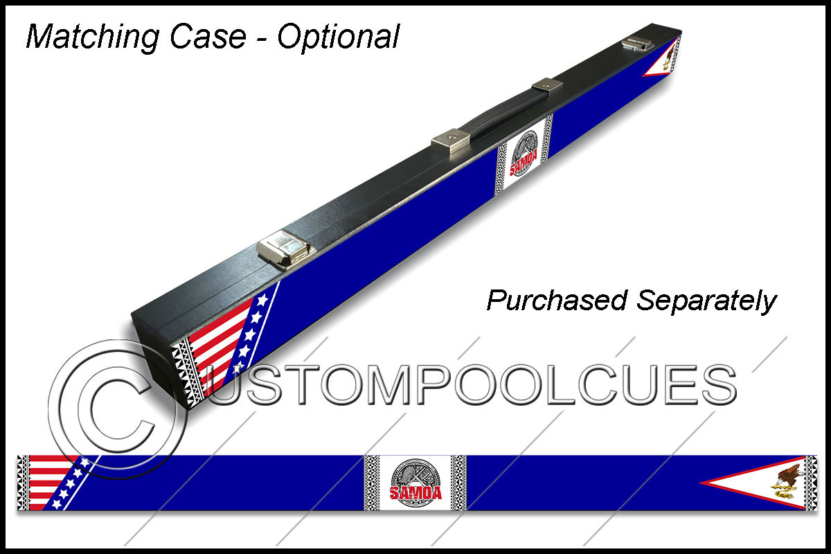 This printed vinyl design with additions will be applied & sealed to a quality tested 57″ two-piece ash cue with your chosen tip & weight options.