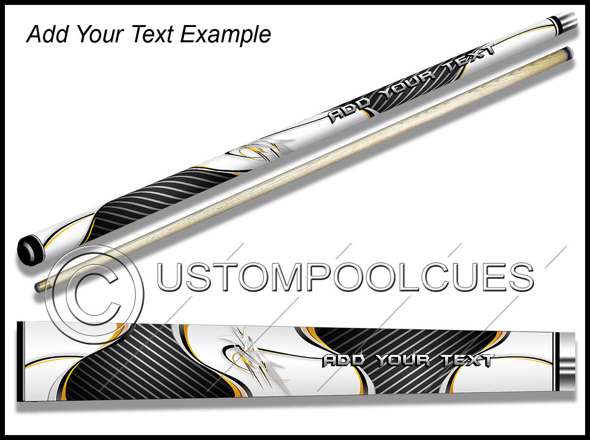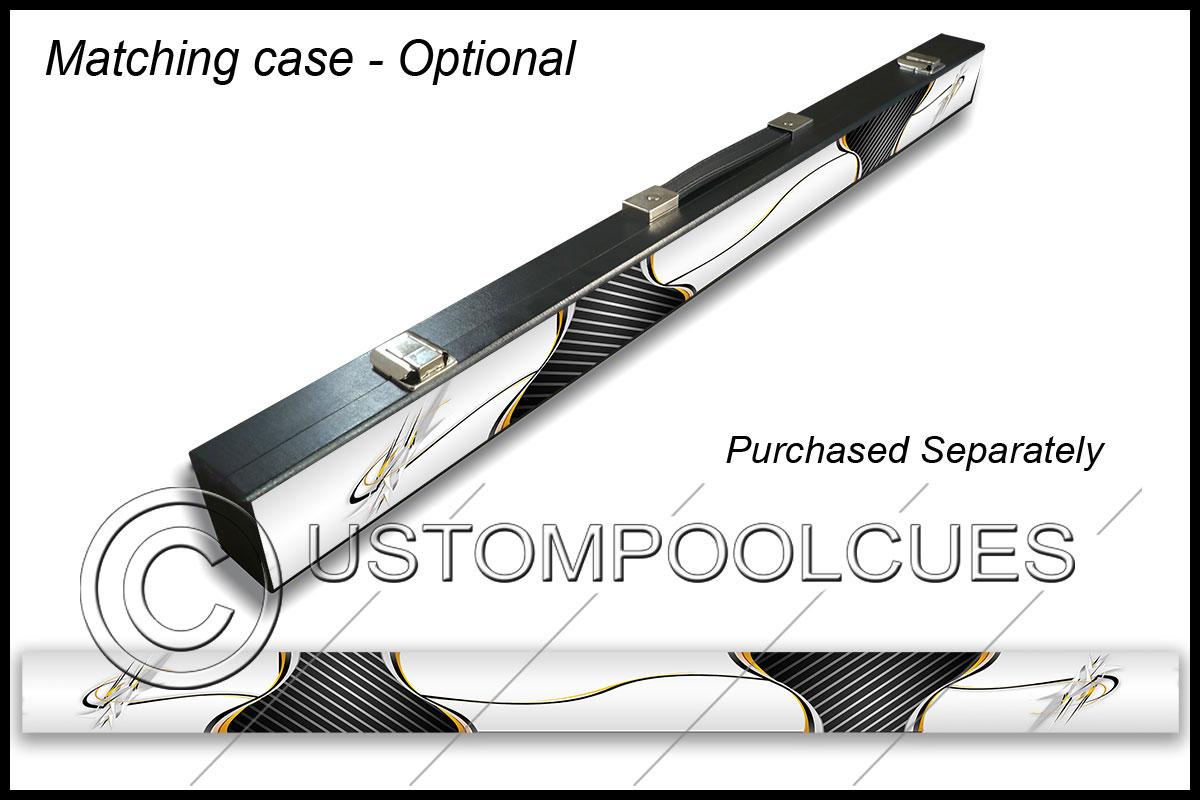 This printed vinyl design with additions will be applied & sealed to a quality tested 57″ two-piece ash cue with your chosen tip & weight options.