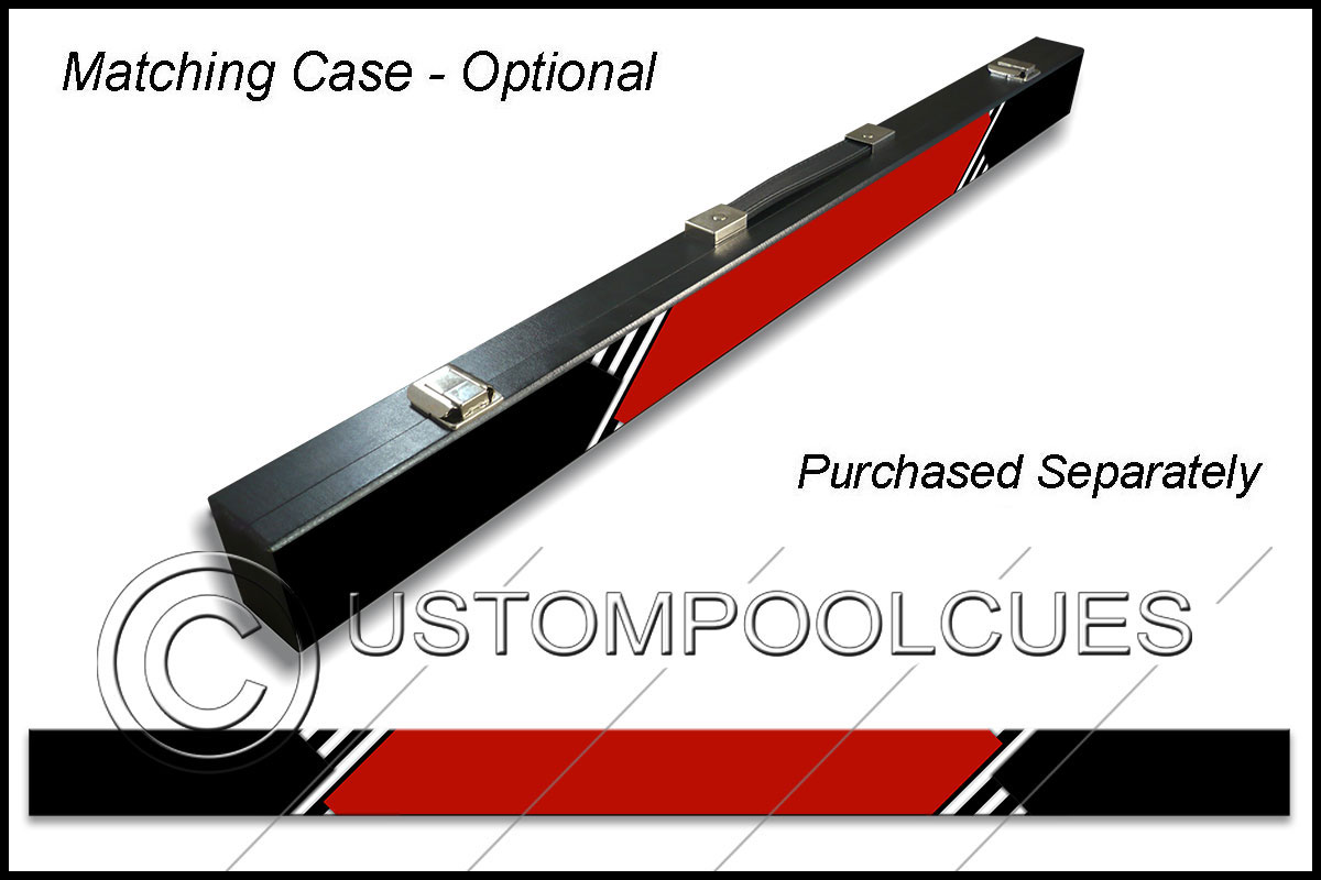 This printed vinyl design with additions will be applied & sealed to a quality tested 57″ two-piece ash cue with your chosen tip & weight options.