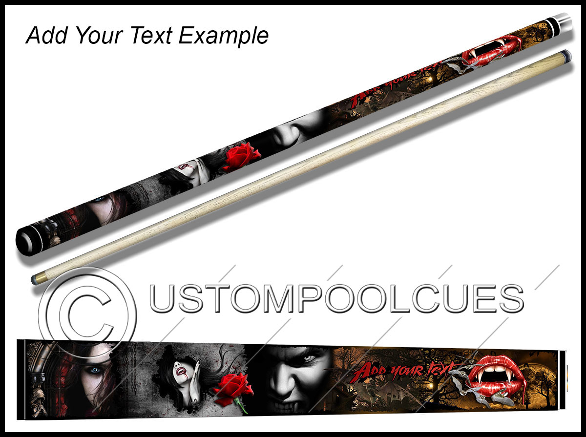 This printed vinyl design with additions will be applied & sealed to a quality tested 57″ two-piece ash cue with your chosen tip & weight options.