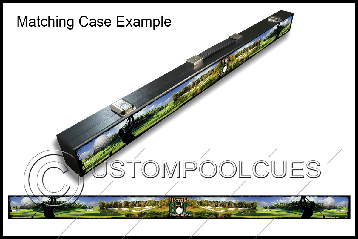 This printed vinyl design with additions will be applied & sealed to a quality tested 57″ two-piece ash cue with your chosen tip & weight options.