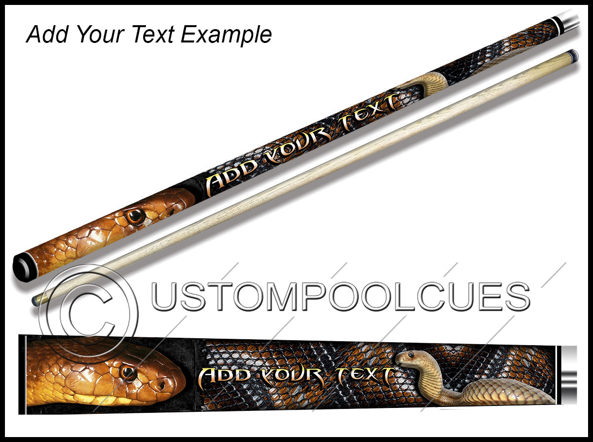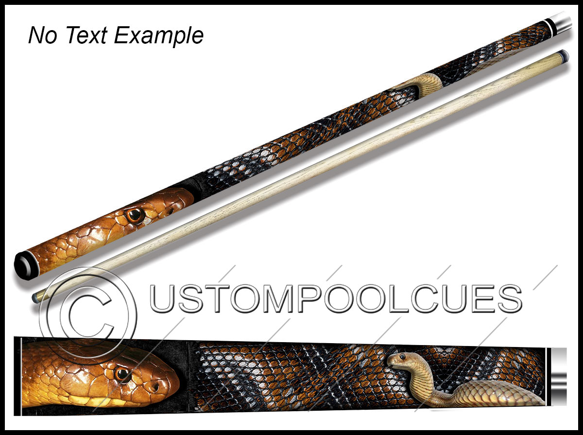 This printed vinyl design with additions will be applied & sealed to a quality tested 57″ two-piece ash cue with your chosen tip & weight options.