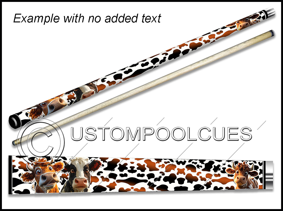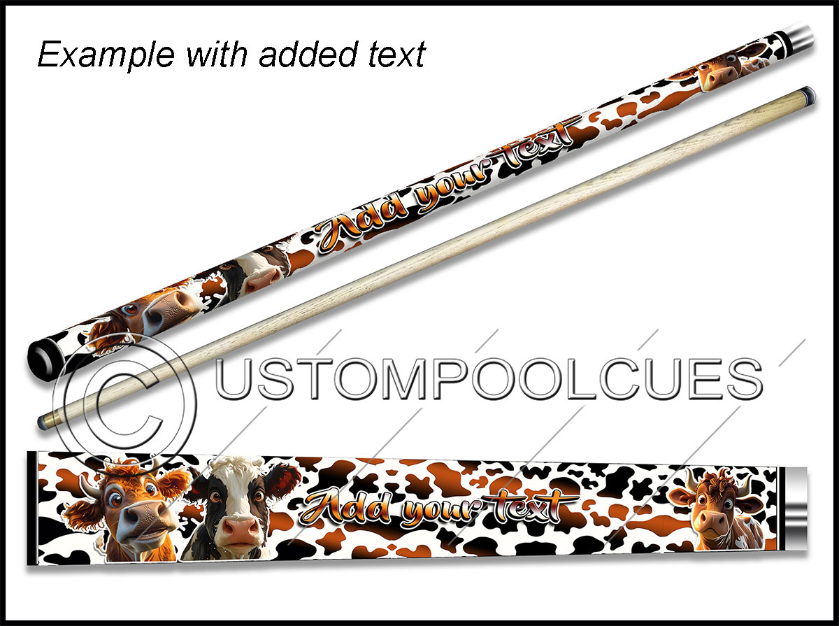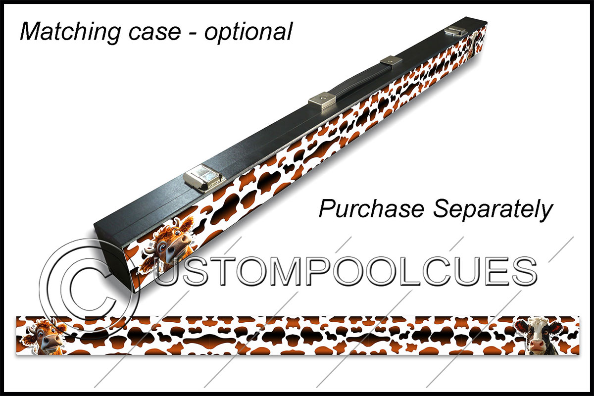 This printed vinyl design with additions will be applied & sealed to a quality tested 57″ two-piece ash cue with your chosen tip & weight options.