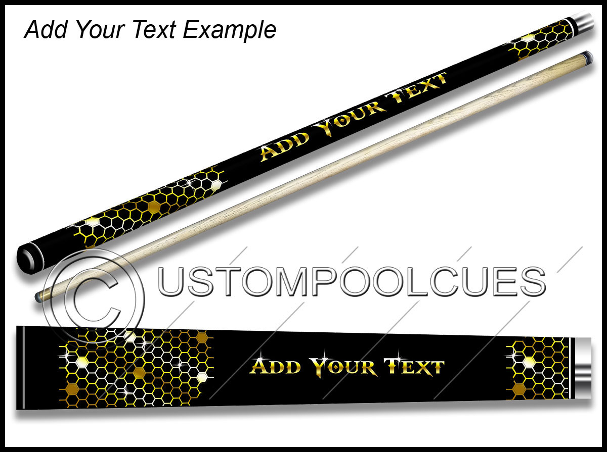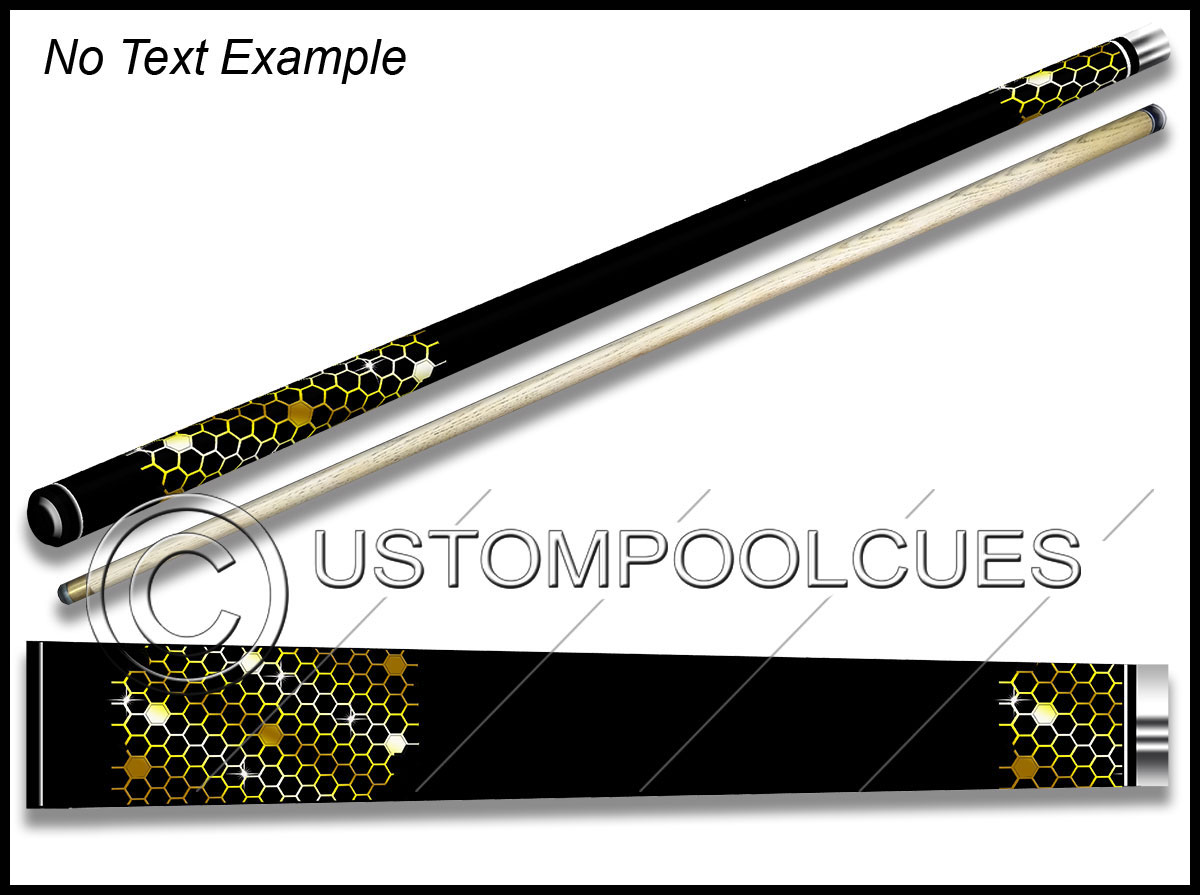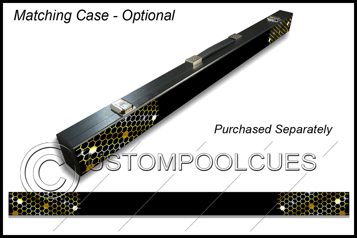 This printed vinyl design with additions will be applied & sealed to a quality tested 57″ two-piece ash cue with your chosen tip & weight options.