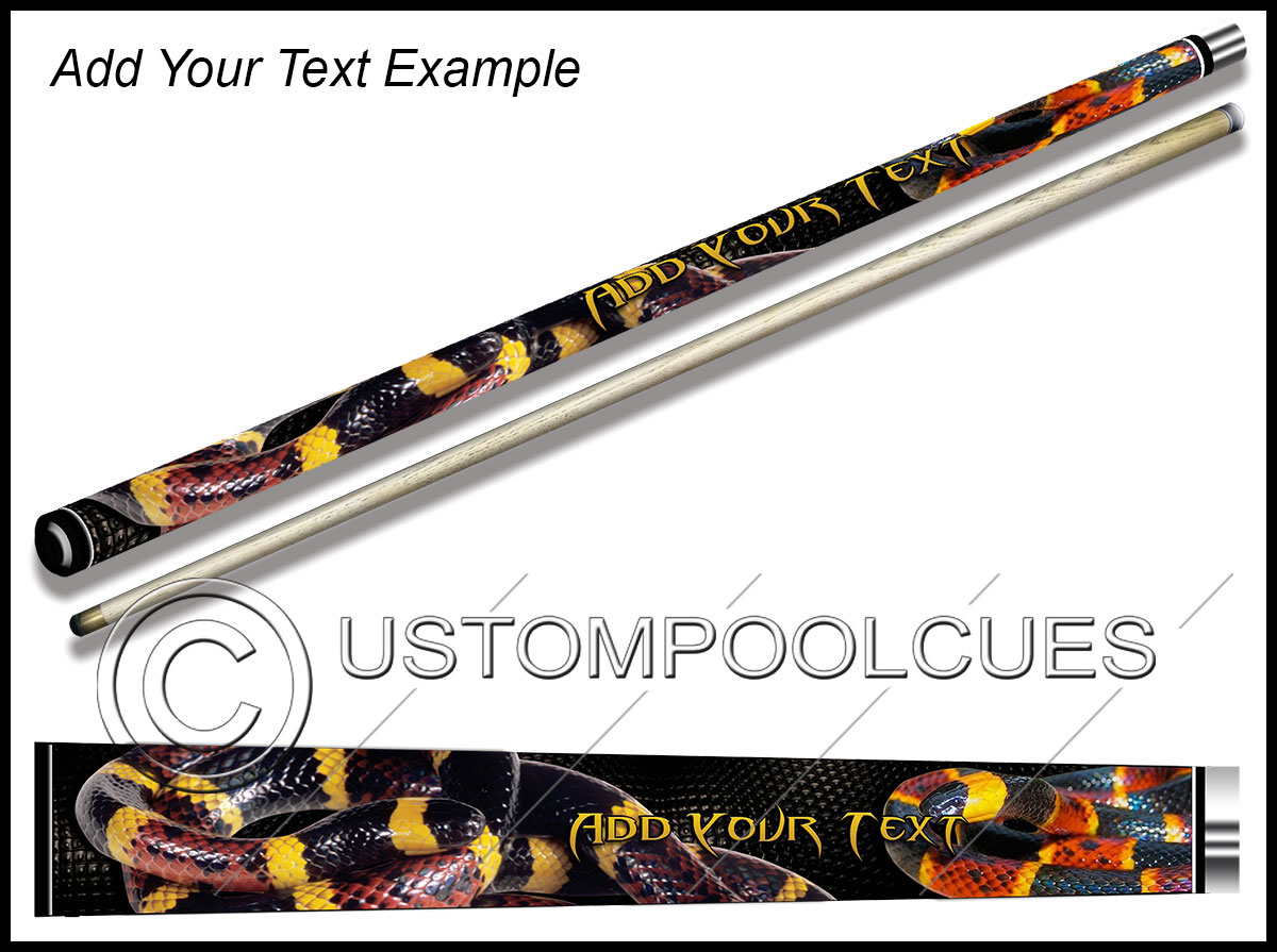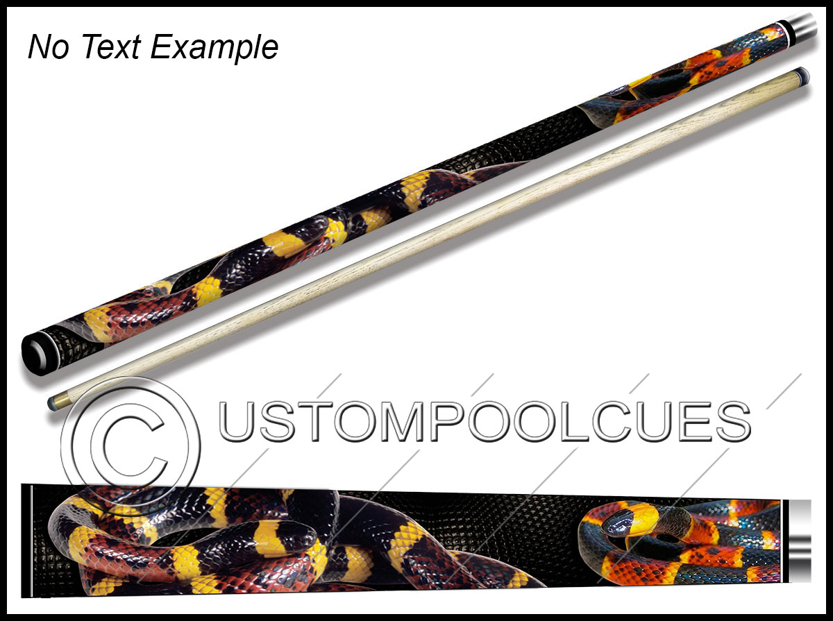 This printed vinyl design with additions will be applied & sealed to a quality tested 57″ two-piece ash cue with your chosen tip & weight options.