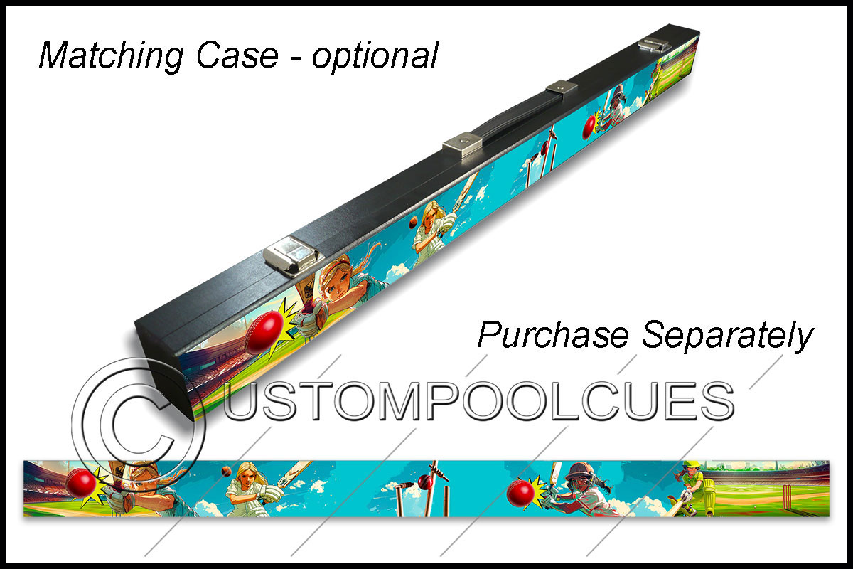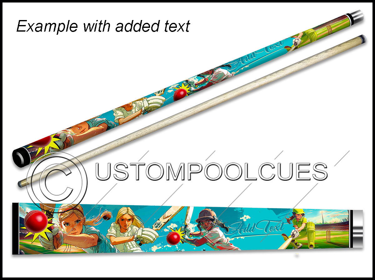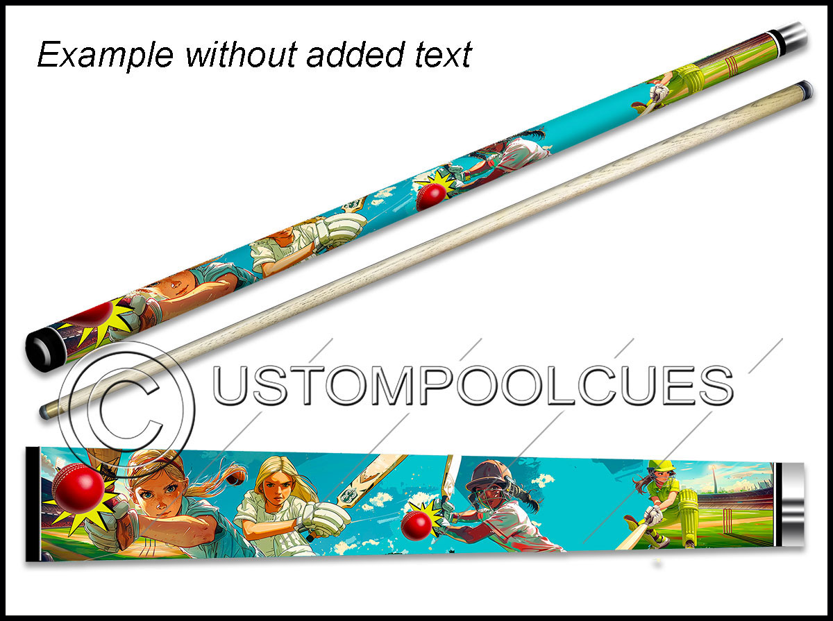 This printed vinyl design with additions will be applied & sealed to a quality tested 57″ two-piece ash cue with your chosen tip & weight options.