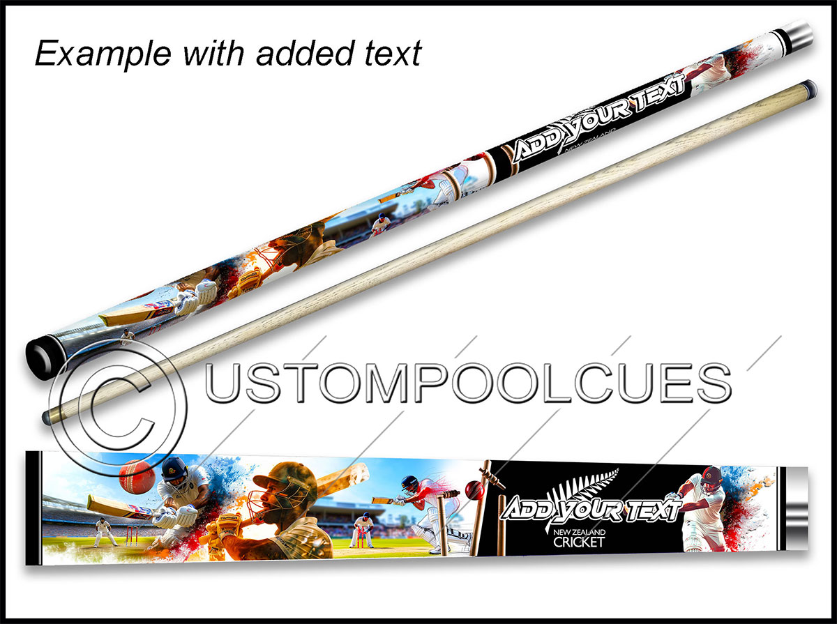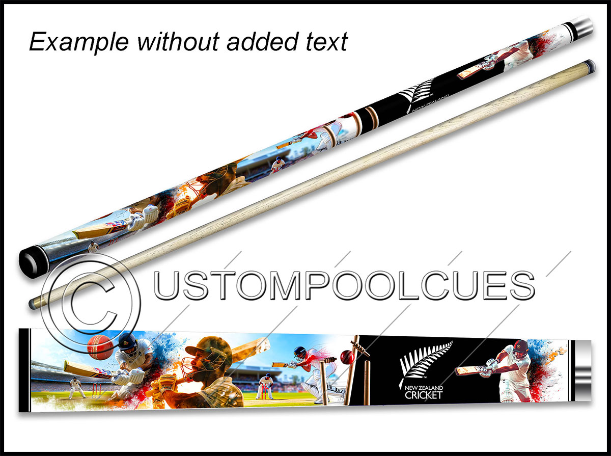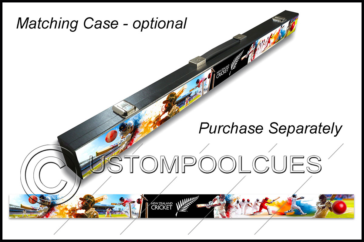 This printed vinyl design with additions will be applied & sealed to a quality tested 57″ two-piece ash cue with your chosen tip & weight options.