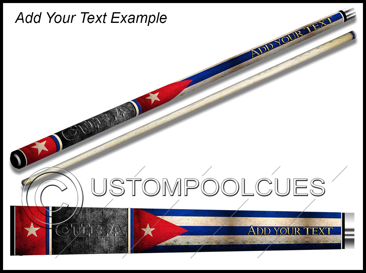 This printed vinyl design with additions will be applied & sealed to a quality tested 57″ two-piece ash cue with your chosen tip & weight options.