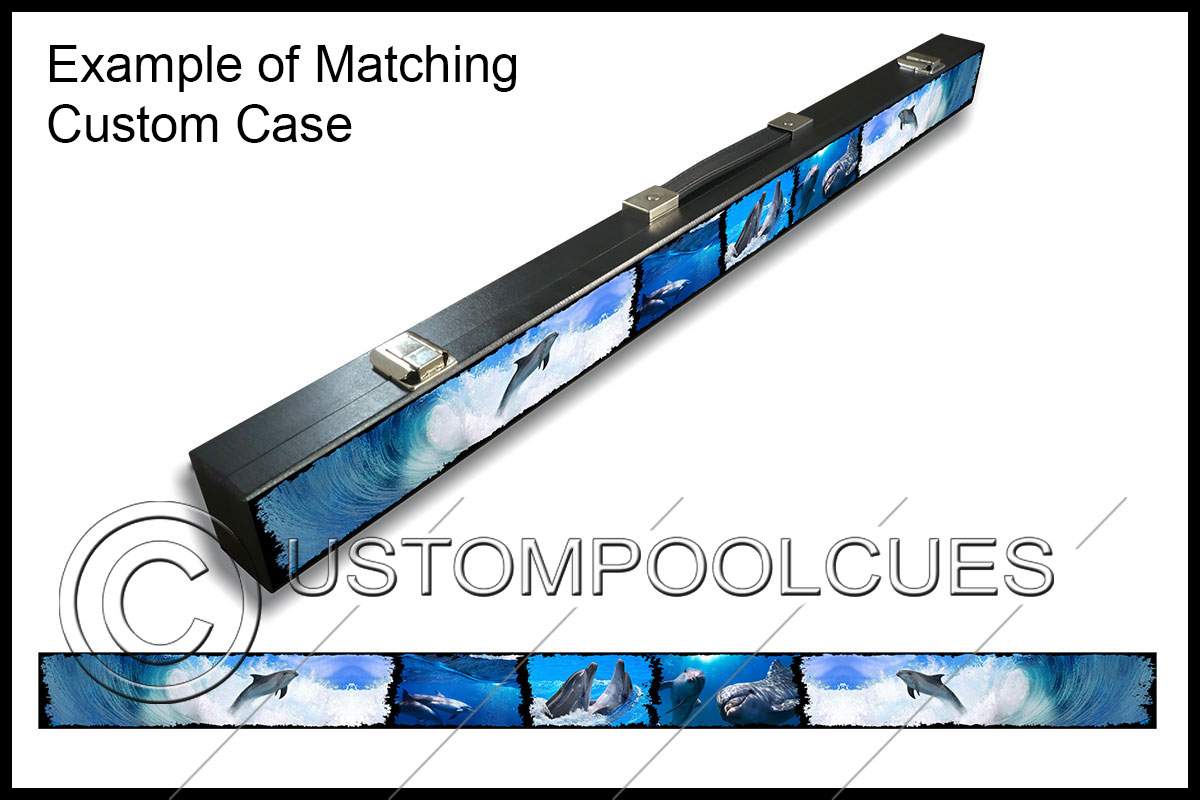 This printed vinyl design with additions will be applied & sealed to a quality tested 57″ two-piece ash cue with your chosen tip & weight options.