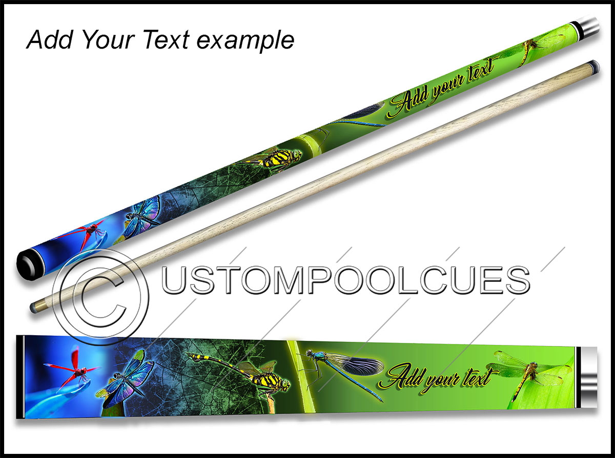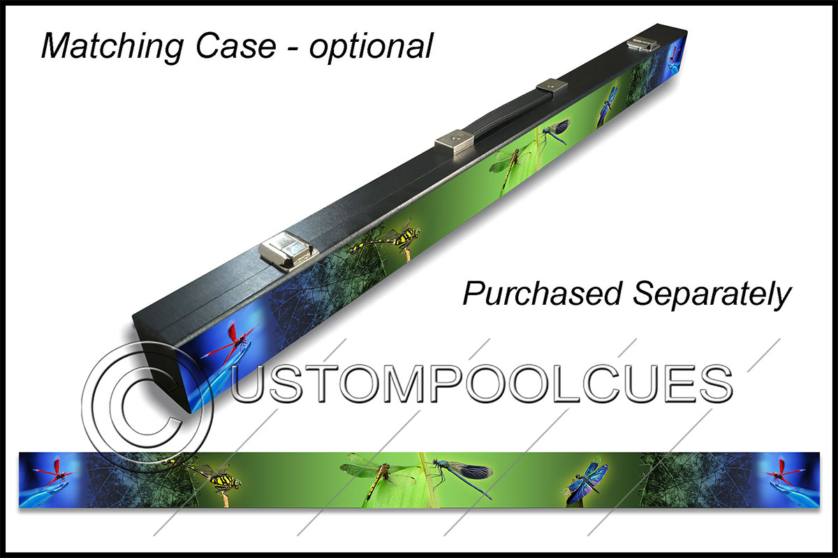 This printed vinyl design with additions will be applied & sealed to a quality tested 57″ two-piece ash cue with your chosen tip & weight options.