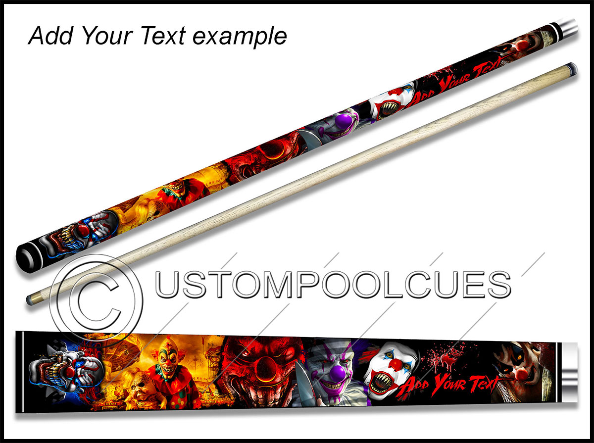 This printed vinyl design with additions will be applied & sealed to a quality tested 57″ two-piece ash cue with your chosen tip & weight options.