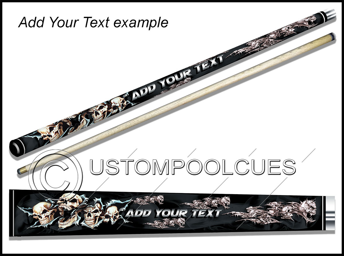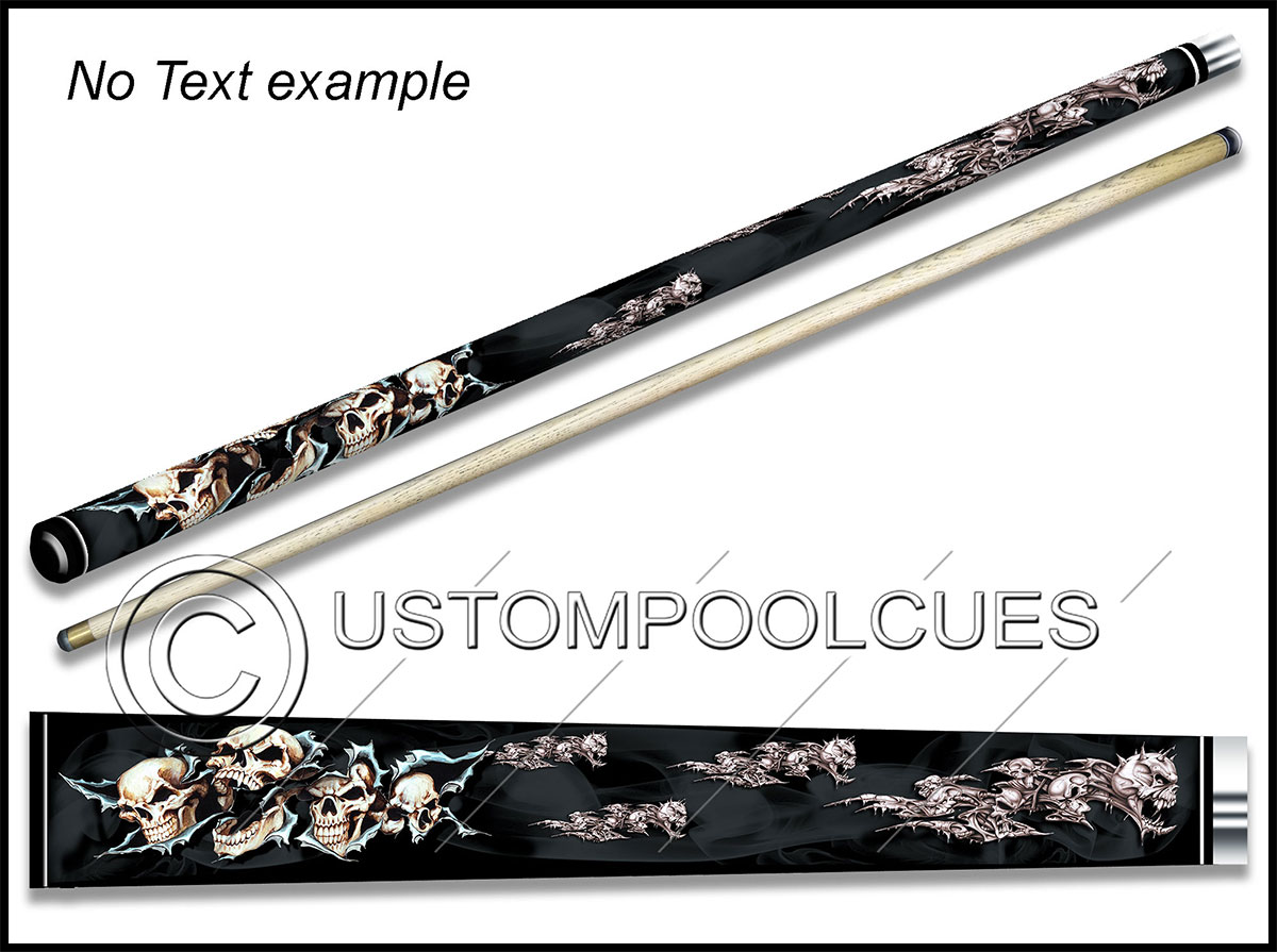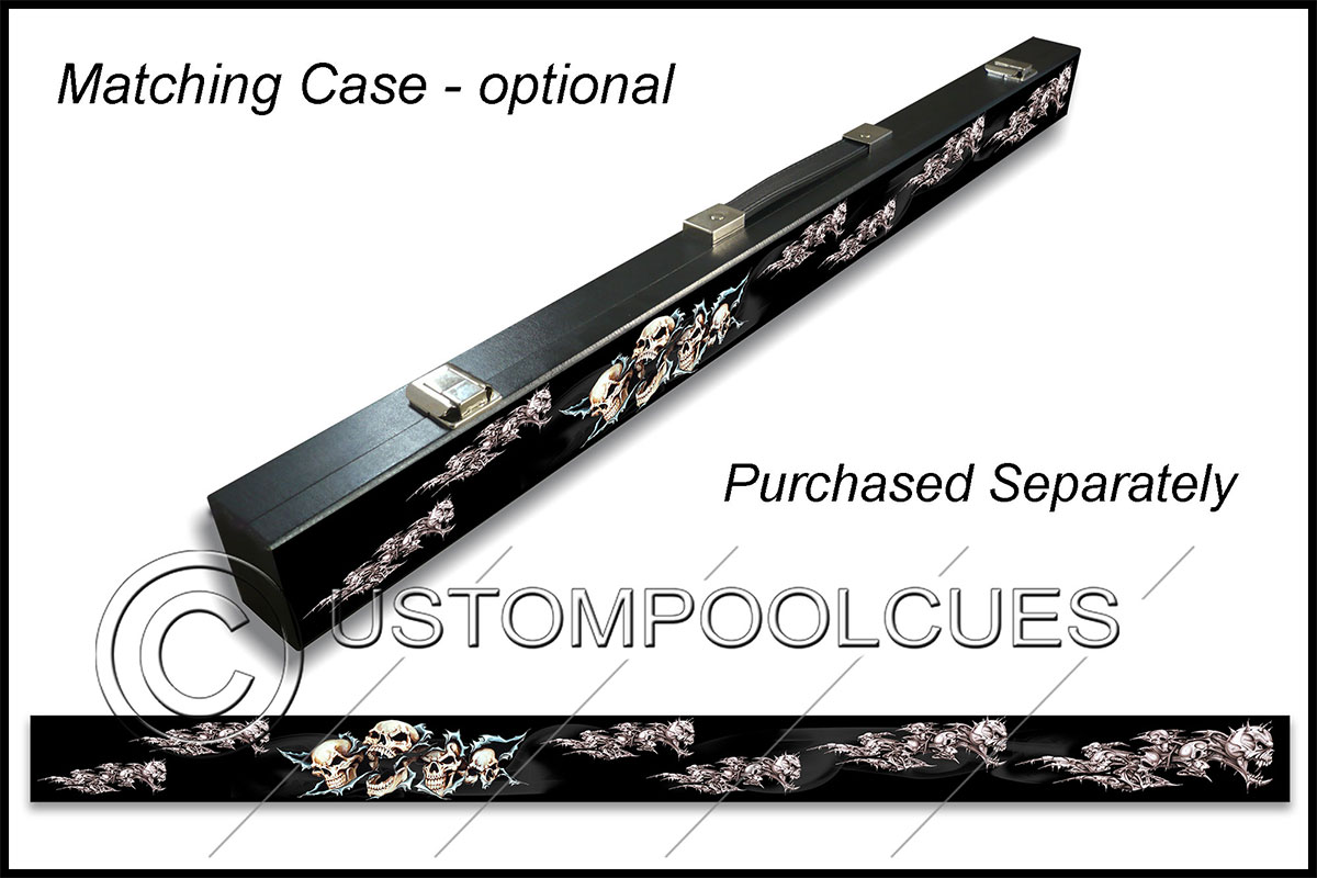 This printed vinyl design with additions will be applied & sealed to a quality tested 57″ two-piece ash cue with your chosen tip & weight options.