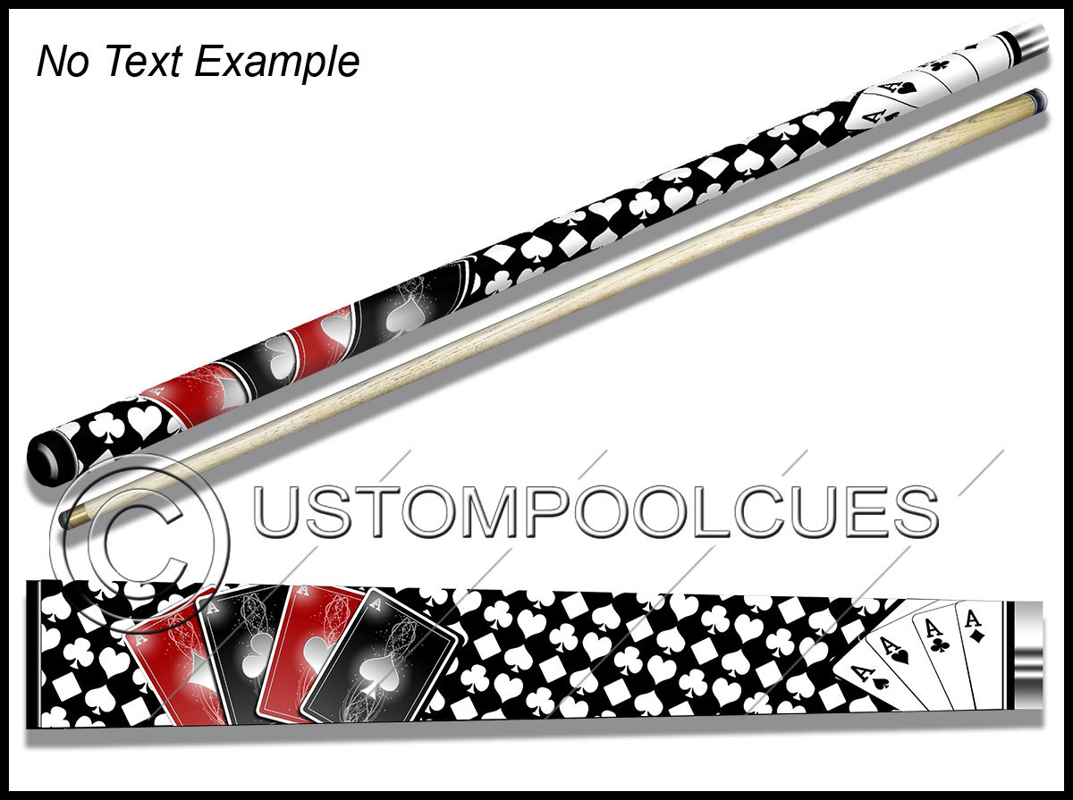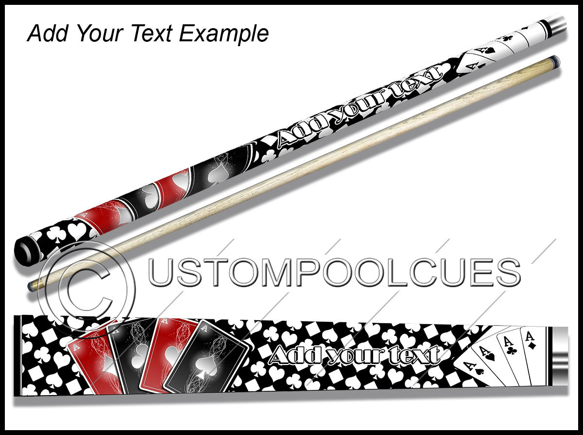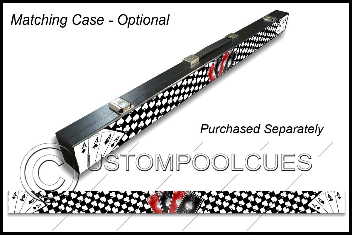 This printed vinyl design with additions will be applied & sealed to a quality tested 57″ two-piece ash cue with your chosen tip & weight options.