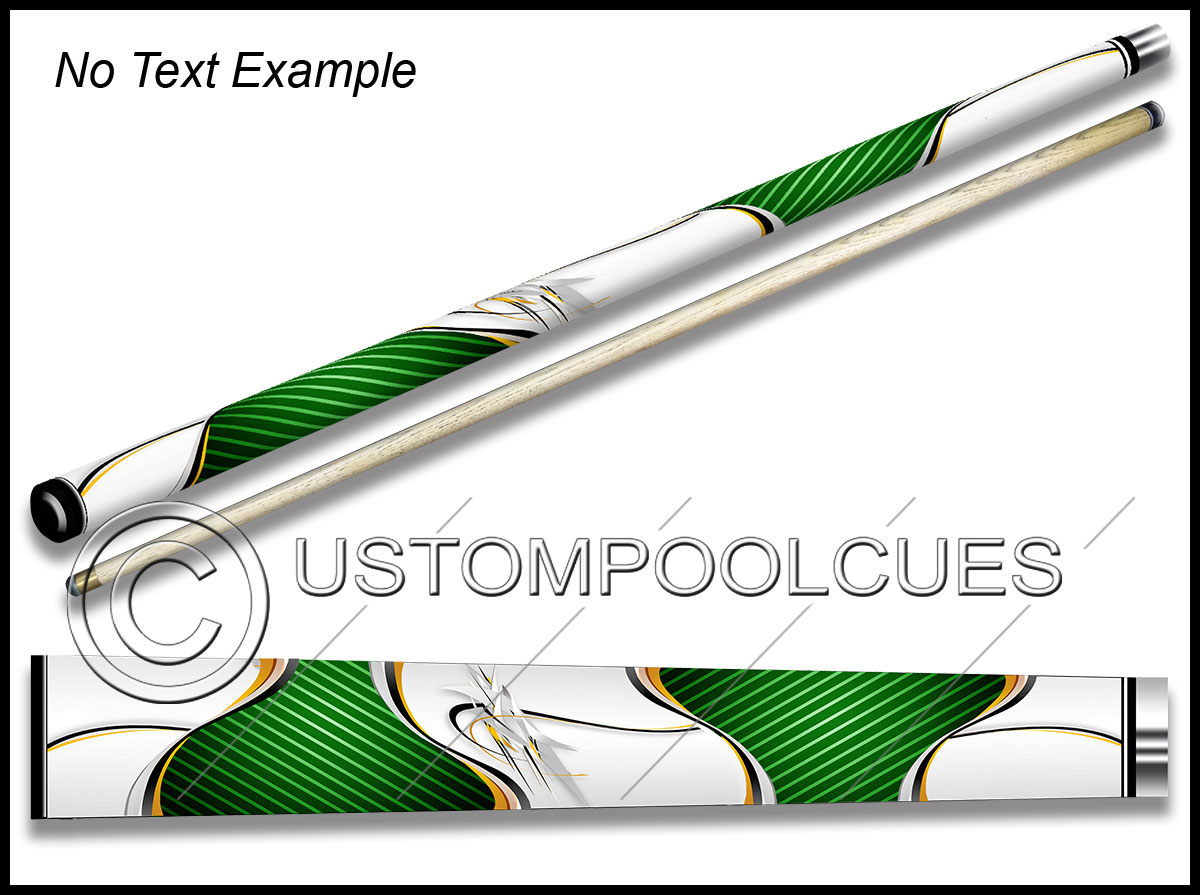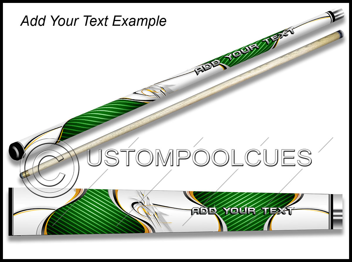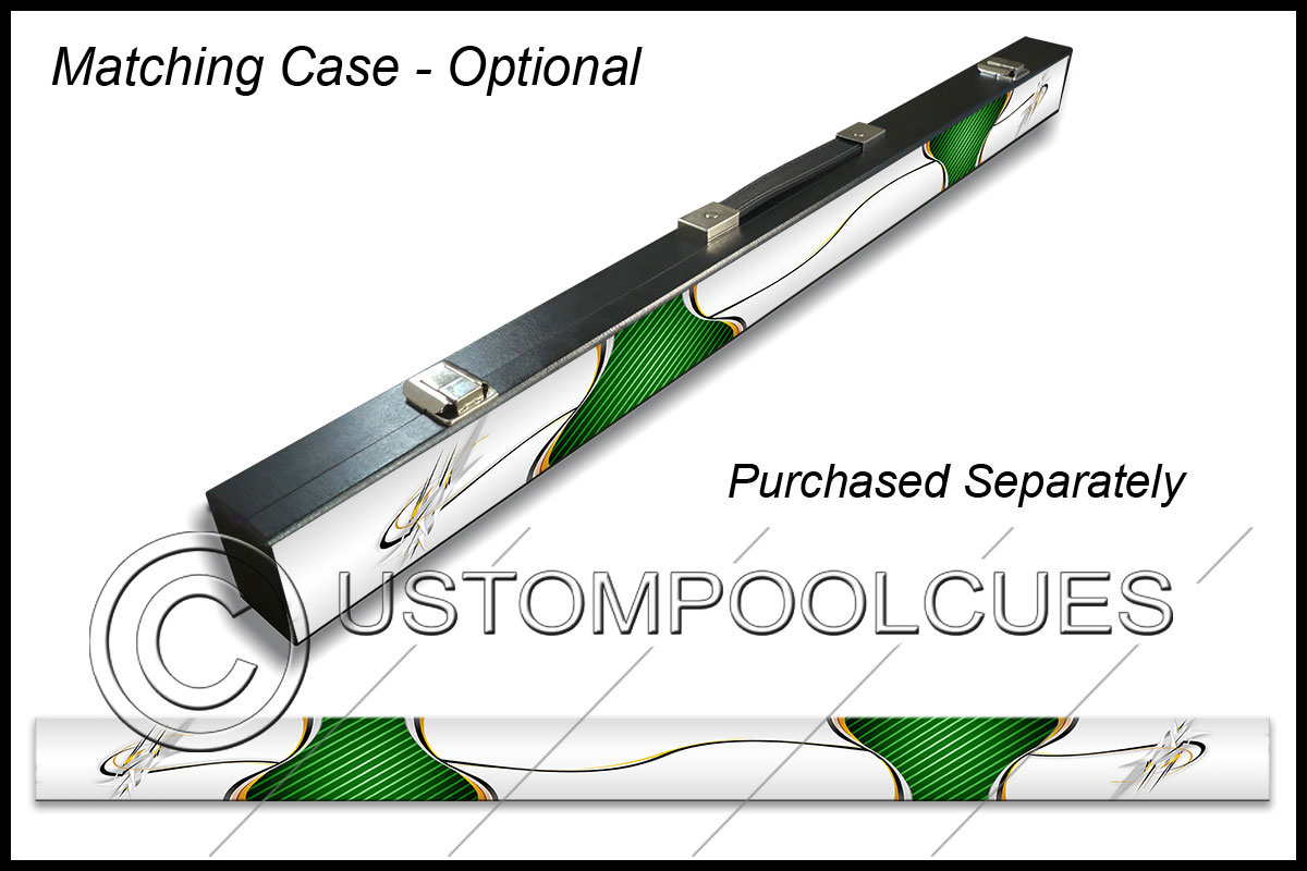 This printed vinyl design with additions will be applied & sealed to a quality tested 57″ two-piece ash cue with your chosen tip & weight options.