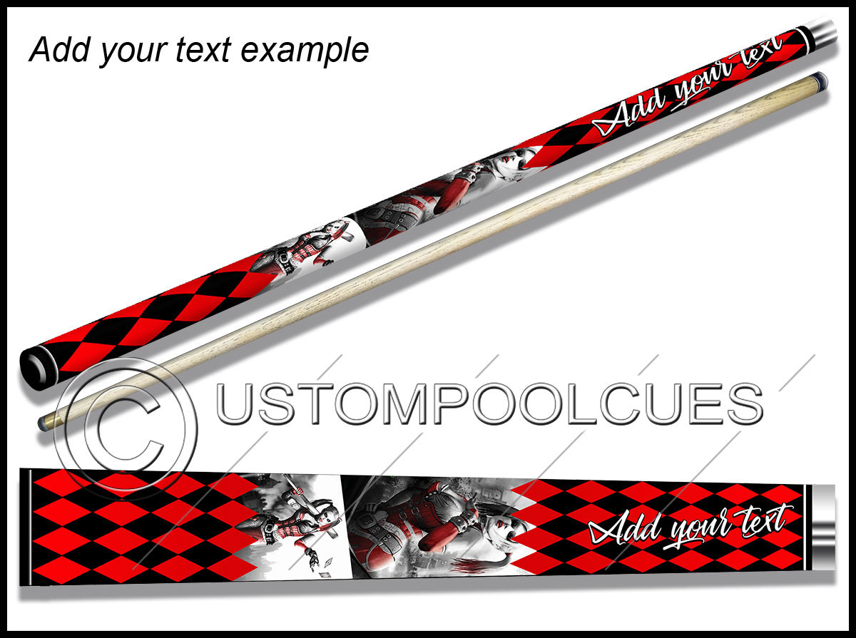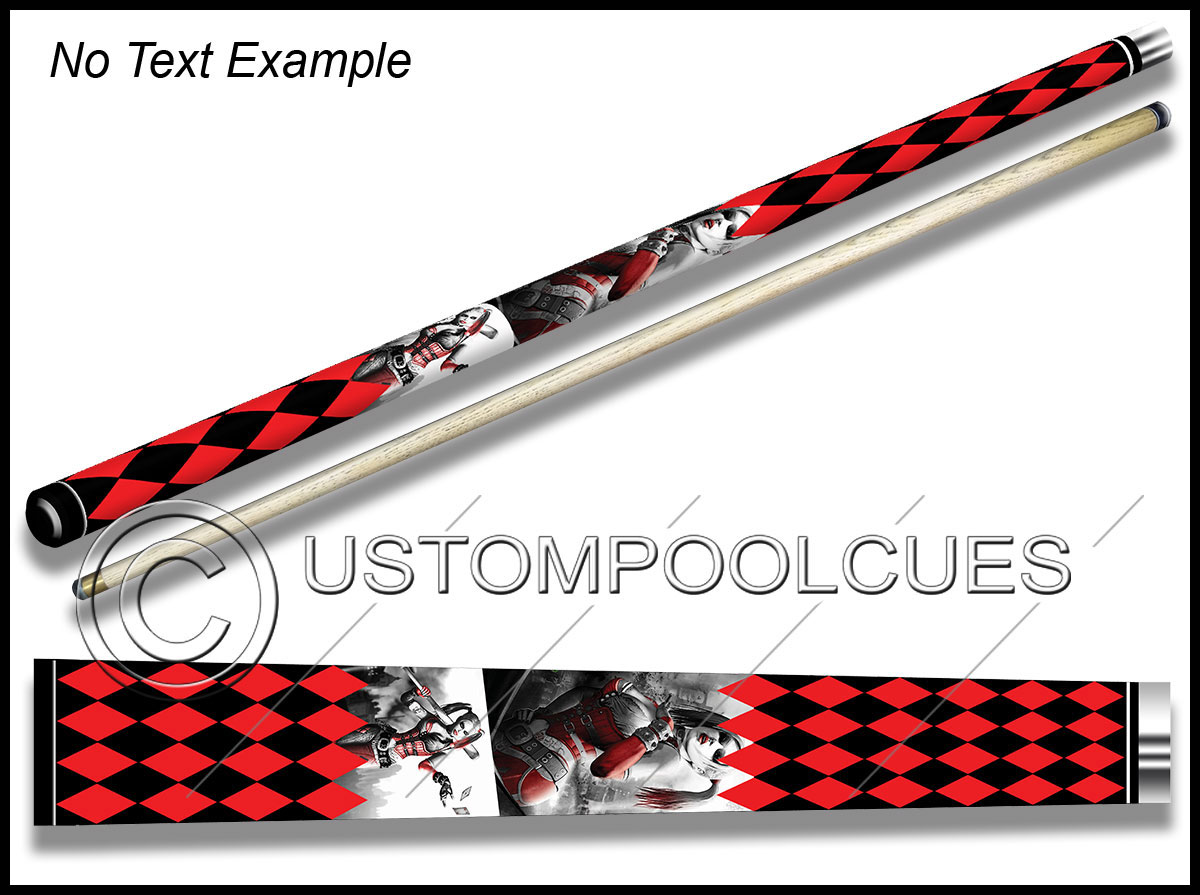 This printed vinyl design with additions will be applied & sealed to a quality tested 57″ two-piece ash cue with your chosen tip & weight options.