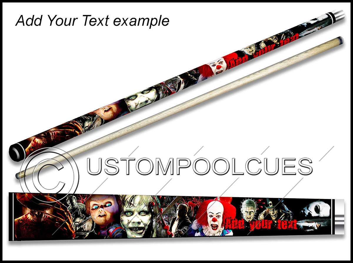This printed vinyl design with additions will be applied & sealed to a quality tested 57″ two-piece ash cue with your chosen tip & weight options.
