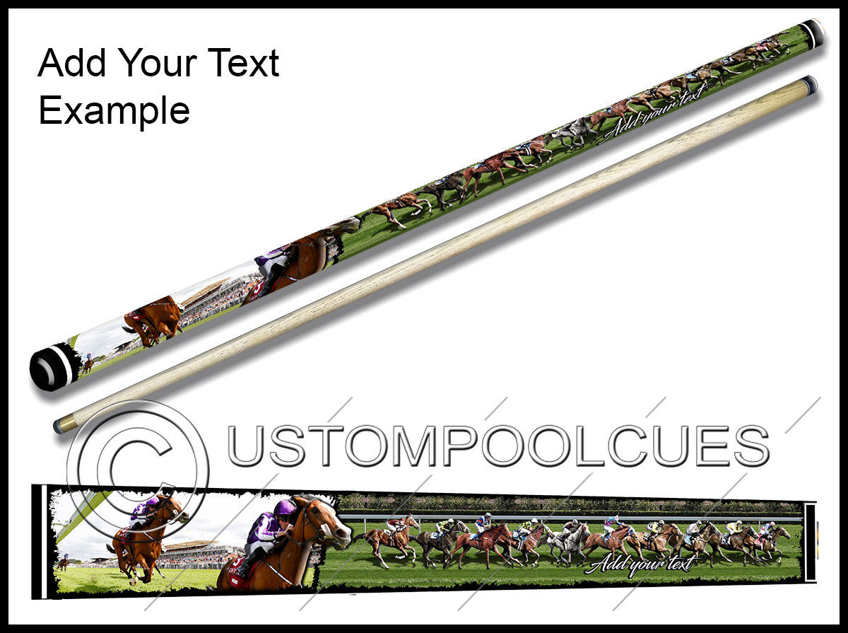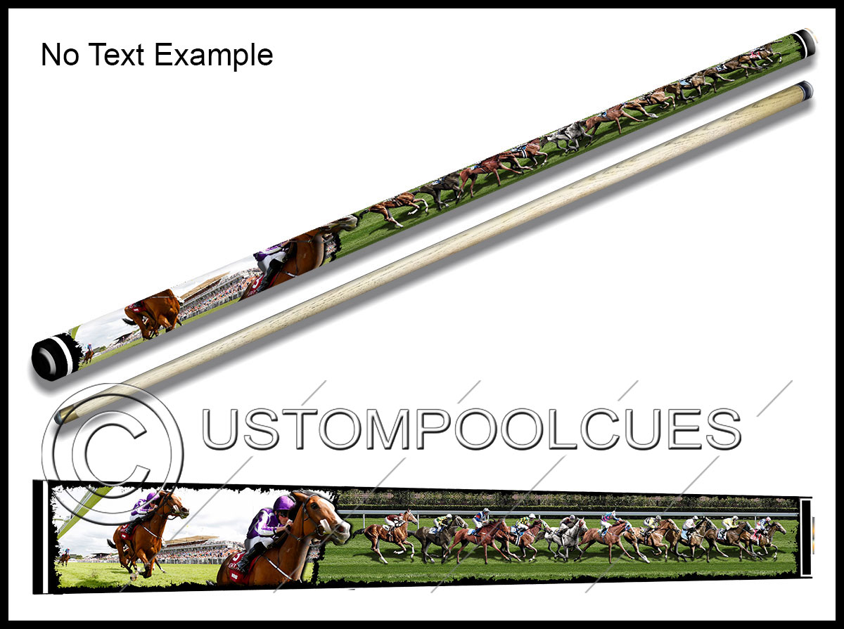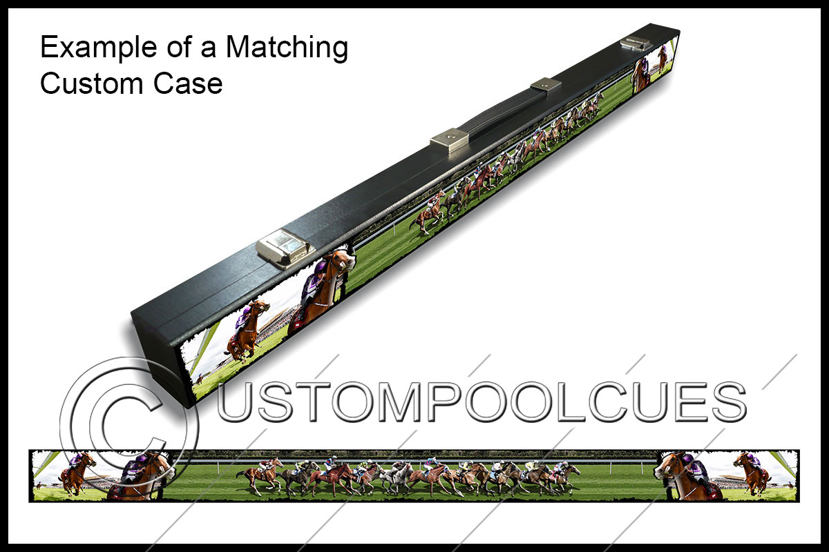 This printed vinyl design with additions will be applied & sealed to a quality tested 57″ two-piece ash cue with your chosen tip & weight options.