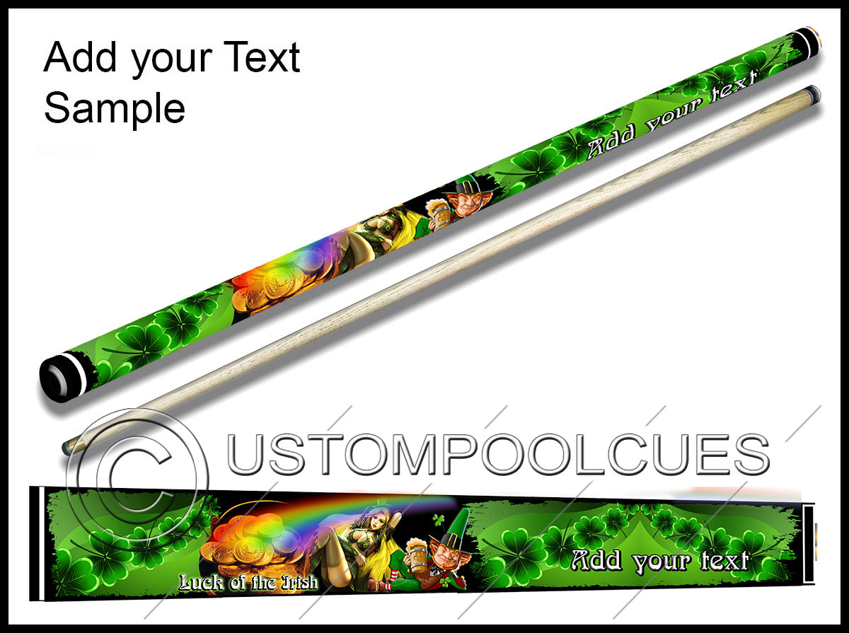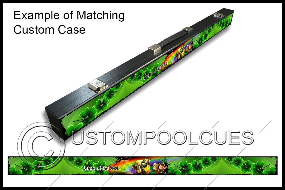 This printed vinyl design with additions will be applied & sealed to a quality tested 57″ two-piece ash cue with your chosen tip & weight options.