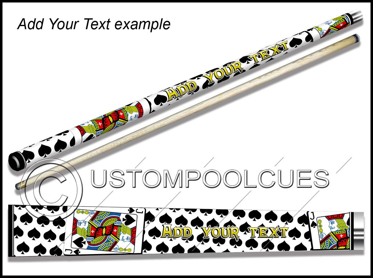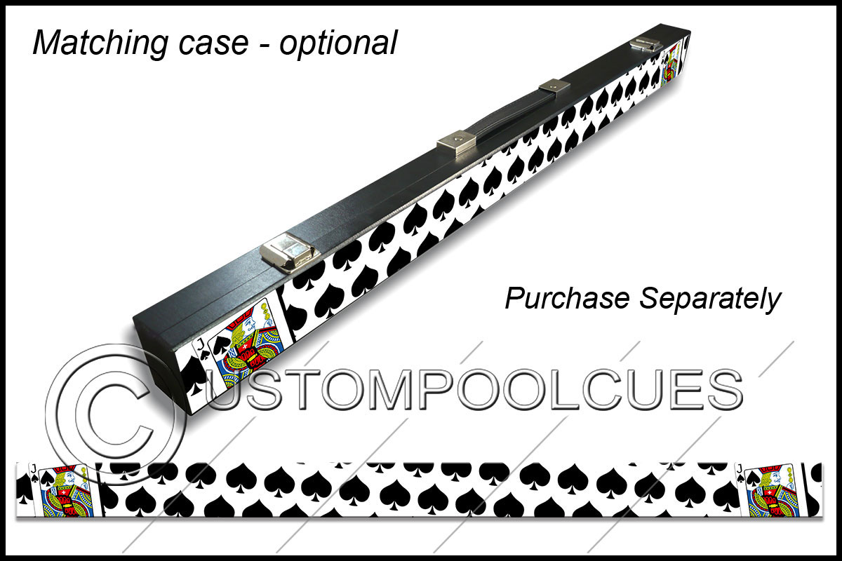 This printed vinyl design with additions will be applied & sealed to a quality tested 57″ two-piece ash cue with your chosen tip & weight options.