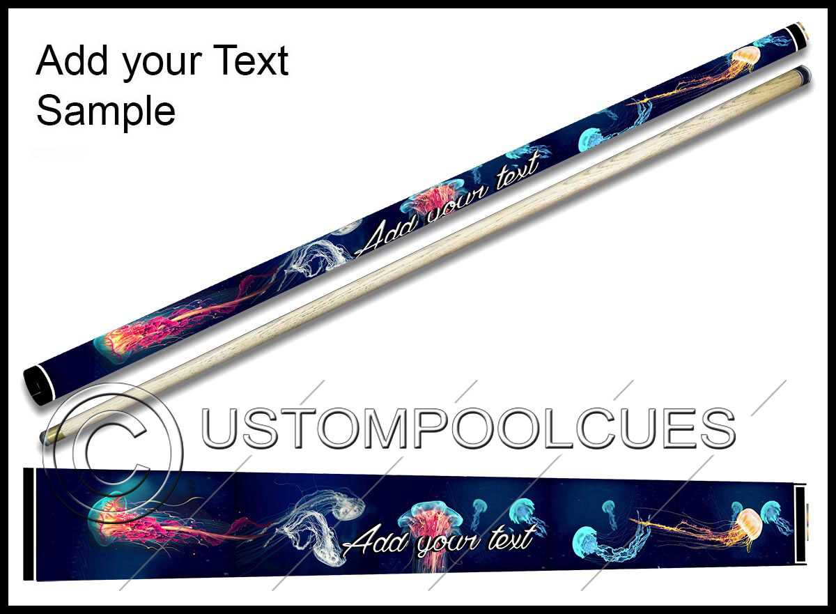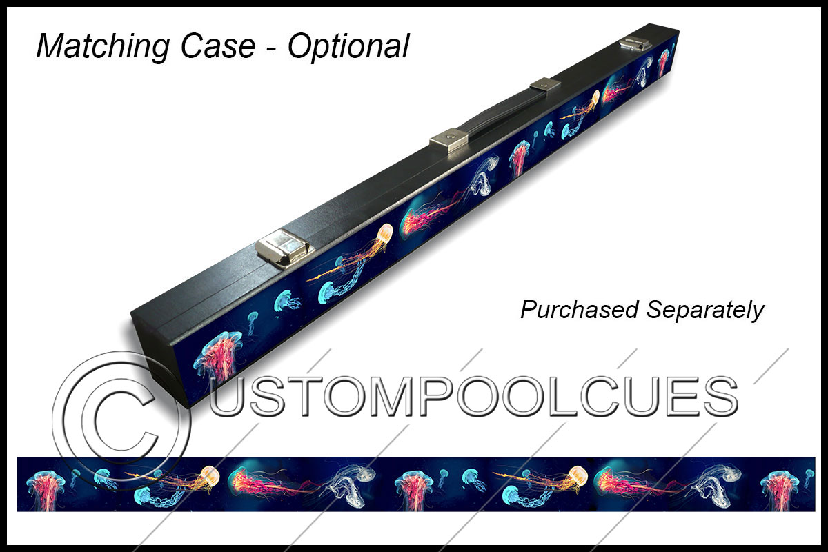 This printed vinyl design with additions will be applied & sealed to a quality tested 57″ two-piece ash cue with your chosen tip & weight options.