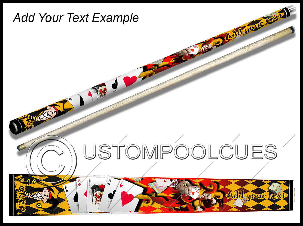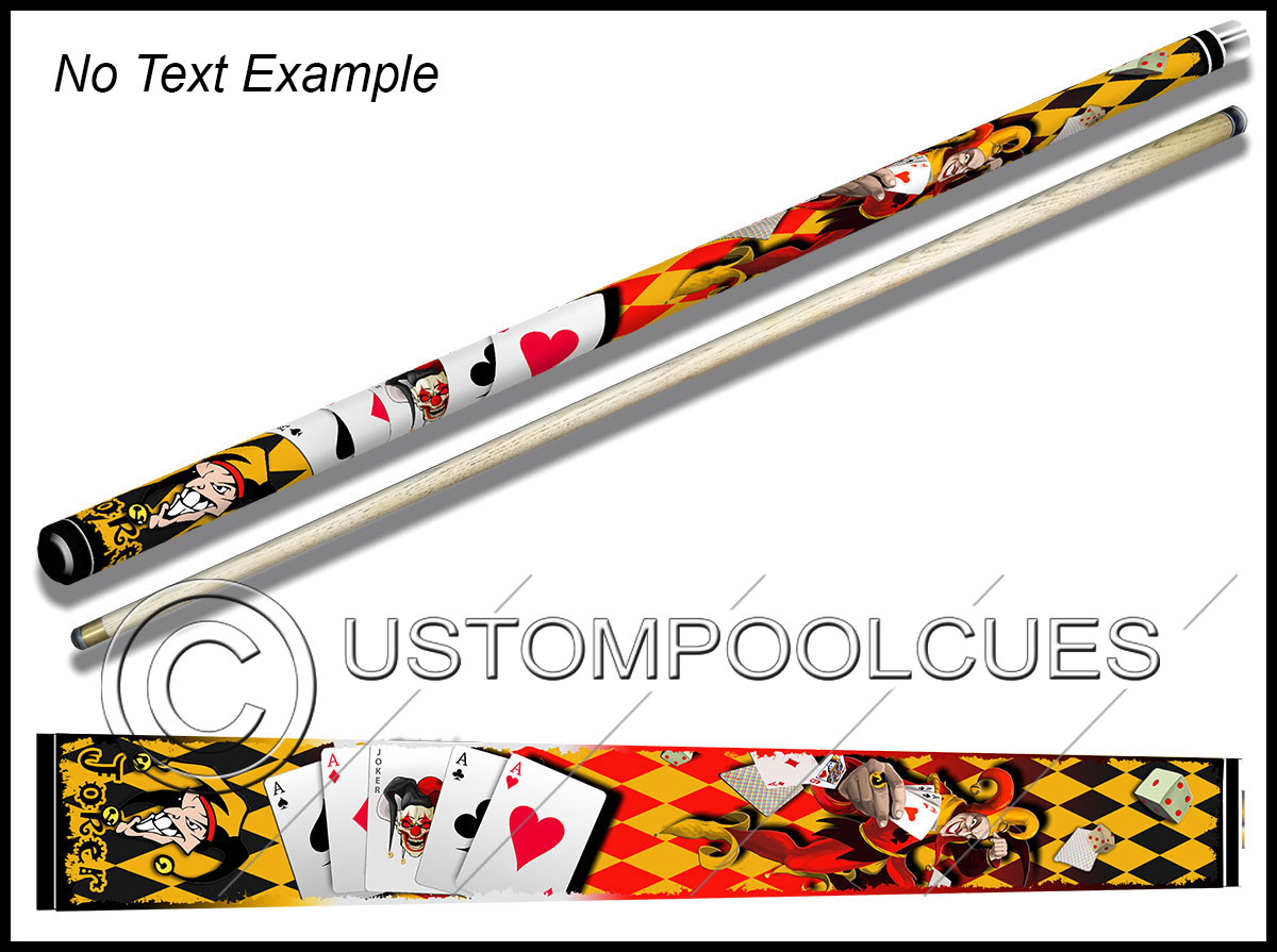 This printed vinyl design with additions will be applied & sealed to a quality tested 57″ two-piece ash cue with your chosen tip & weight options.