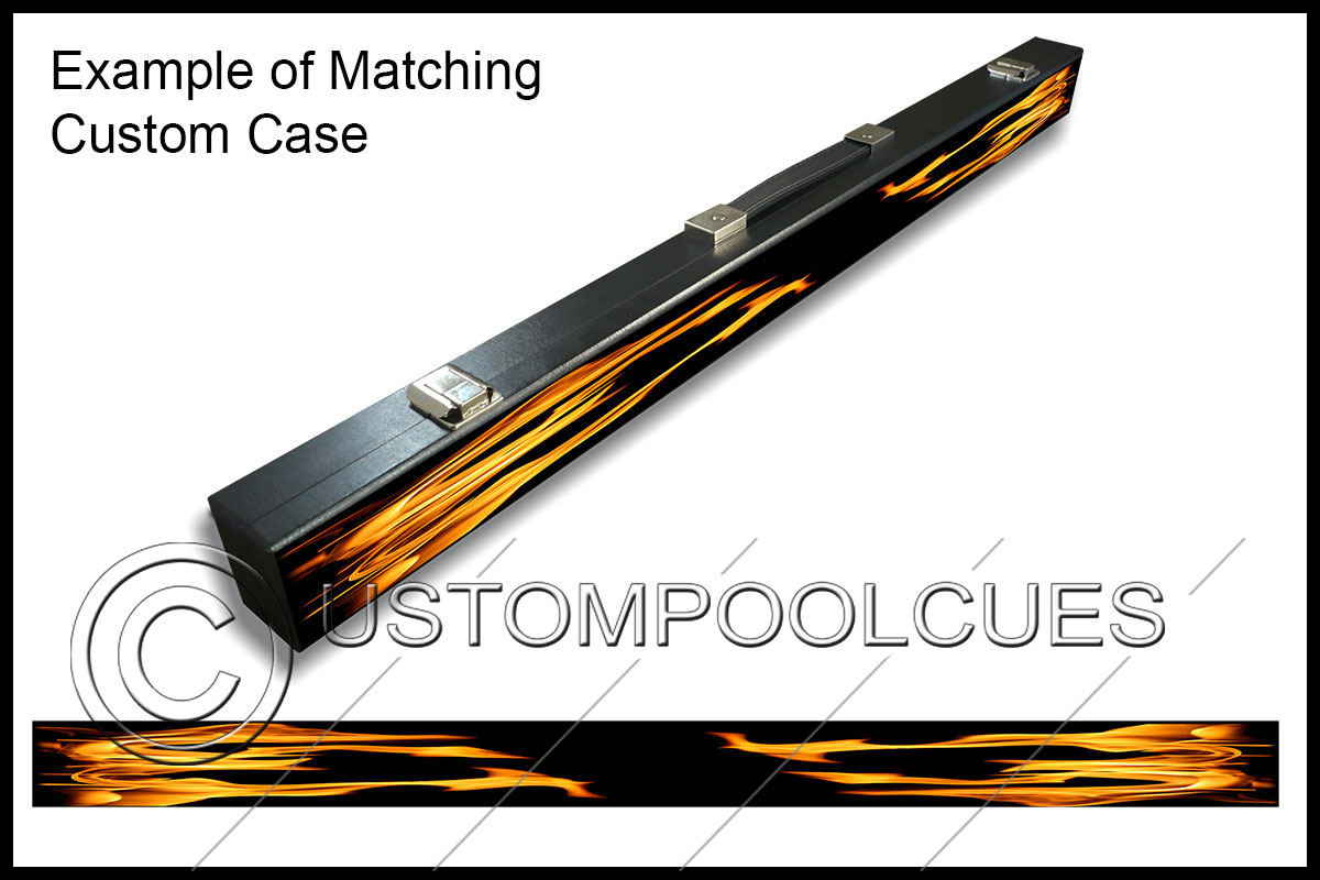 This printed vinyl design with additions will be applied & sealed to a quality tested 57″ two-piece ash cue with your chosen tip & weight options.