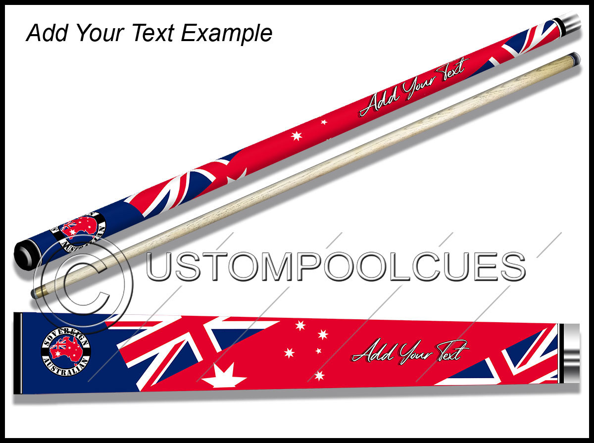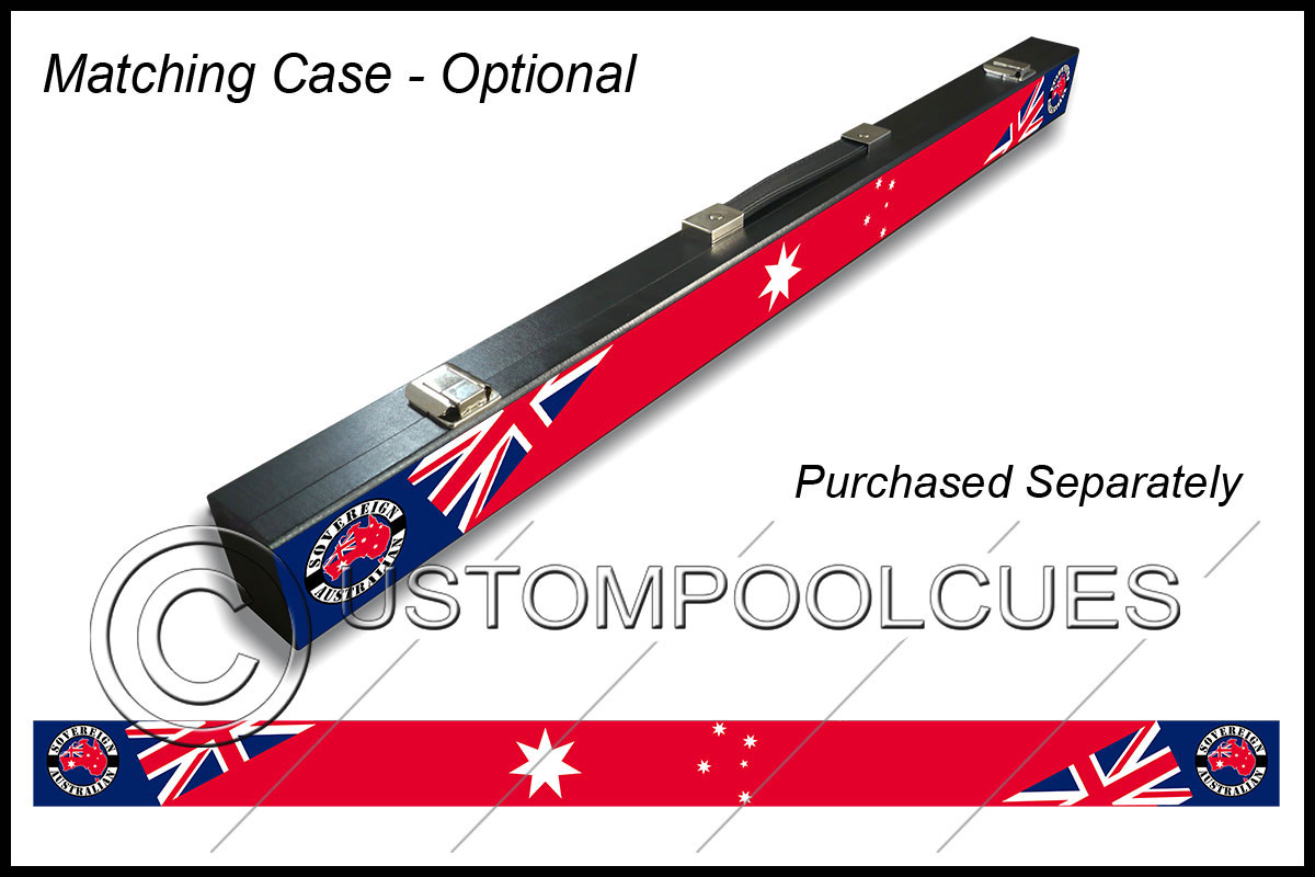 This printed vinyl design with additions will be applied & sealed to a quality tested 57″ two-piece ash cue with your chosen tip & weight options.