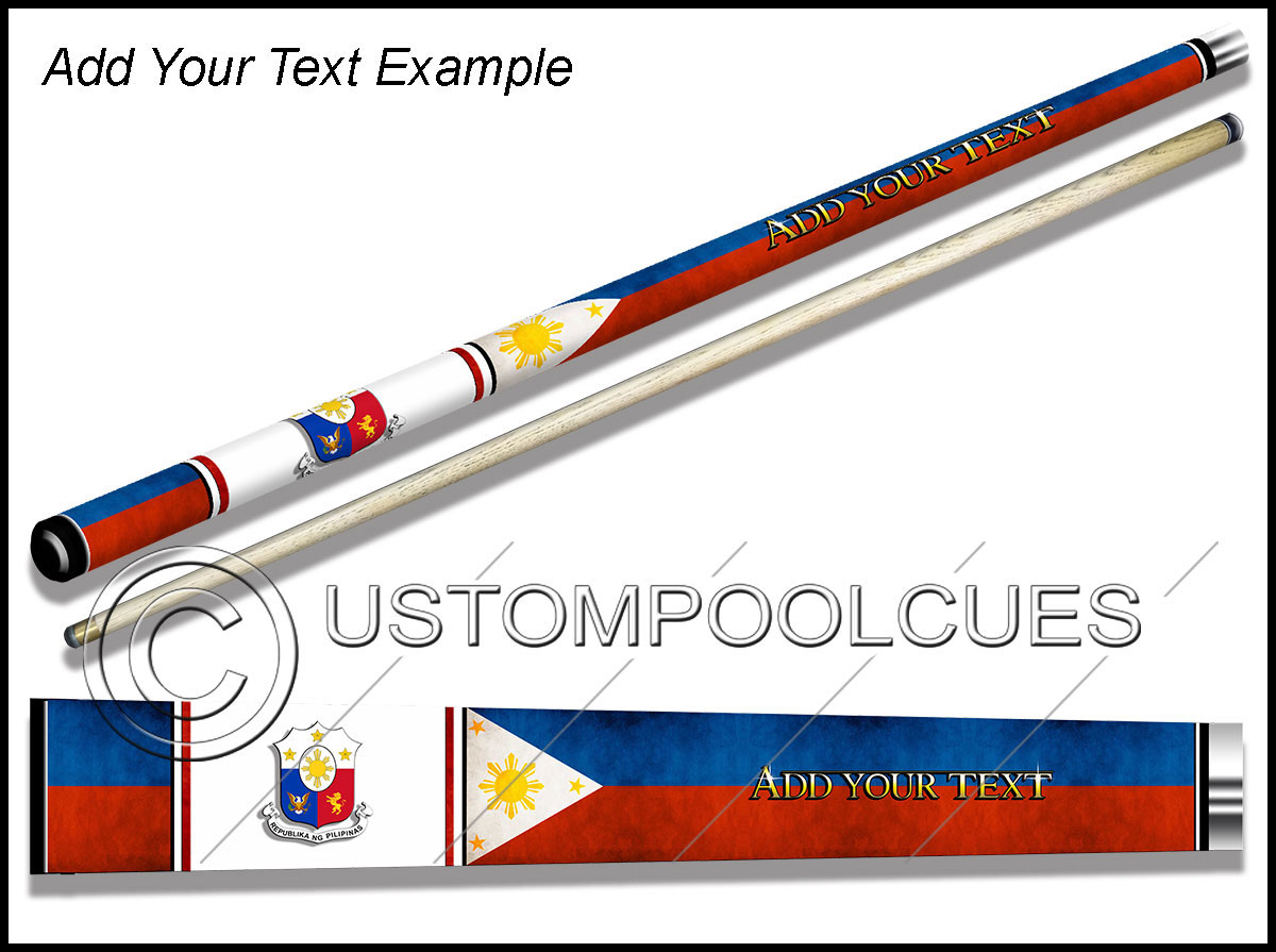 This printed vinyl design with additions will be applied & sealed to a quality tested 57″ two-piece ash cue with your chosen tip & weight options.