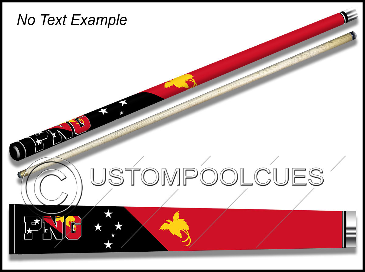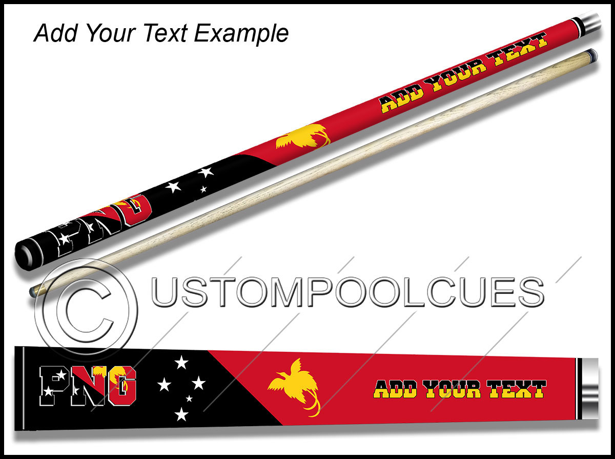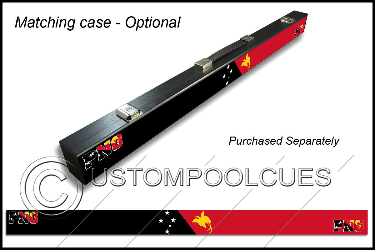 This printed vinyl design with additions will be applied & sealed to a quality tested 57″ two-piece ash cue with your chosen tip & weight options.