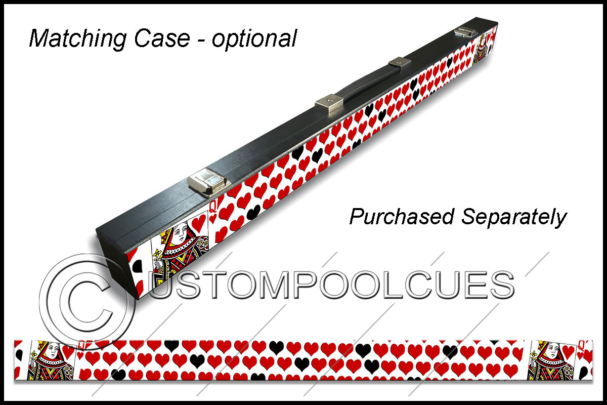 This printed vinyl design with additions will be applied & sealed to a quality tested 57″ two-piece ash cue with your chosen tip & weight options.