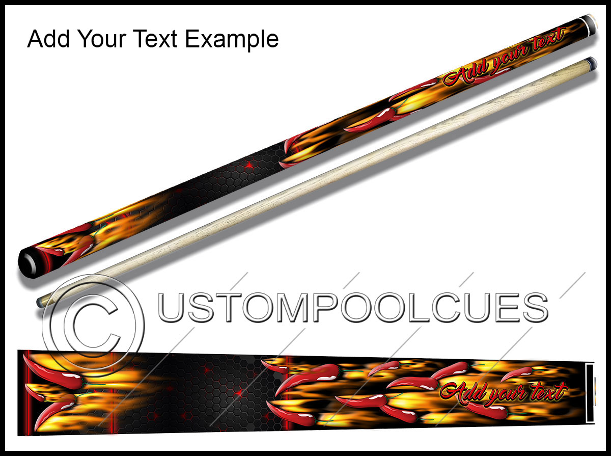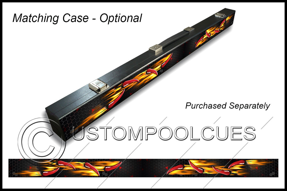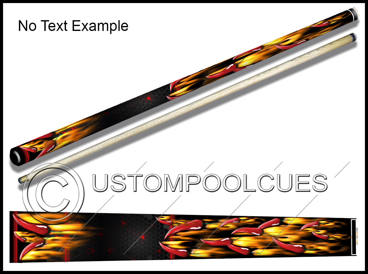 This printed vinyl design with additions will be applied & sealed to a quality tested 57″ two-piece ash cue with your chosen tip & weight options.