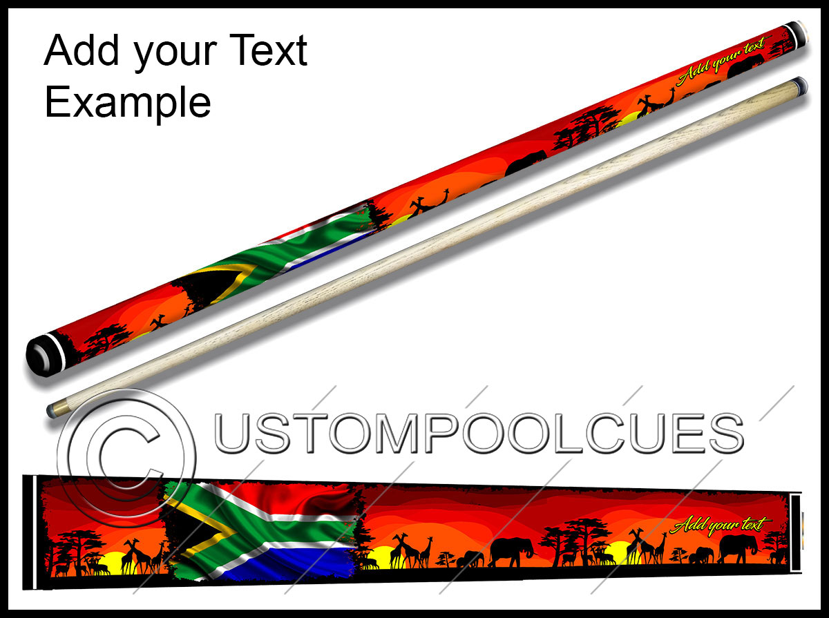 This printed vinyl design with additions will be applied & sealed to a quality tested 57″ two-piece ash cue with your chosen tip & weight options.