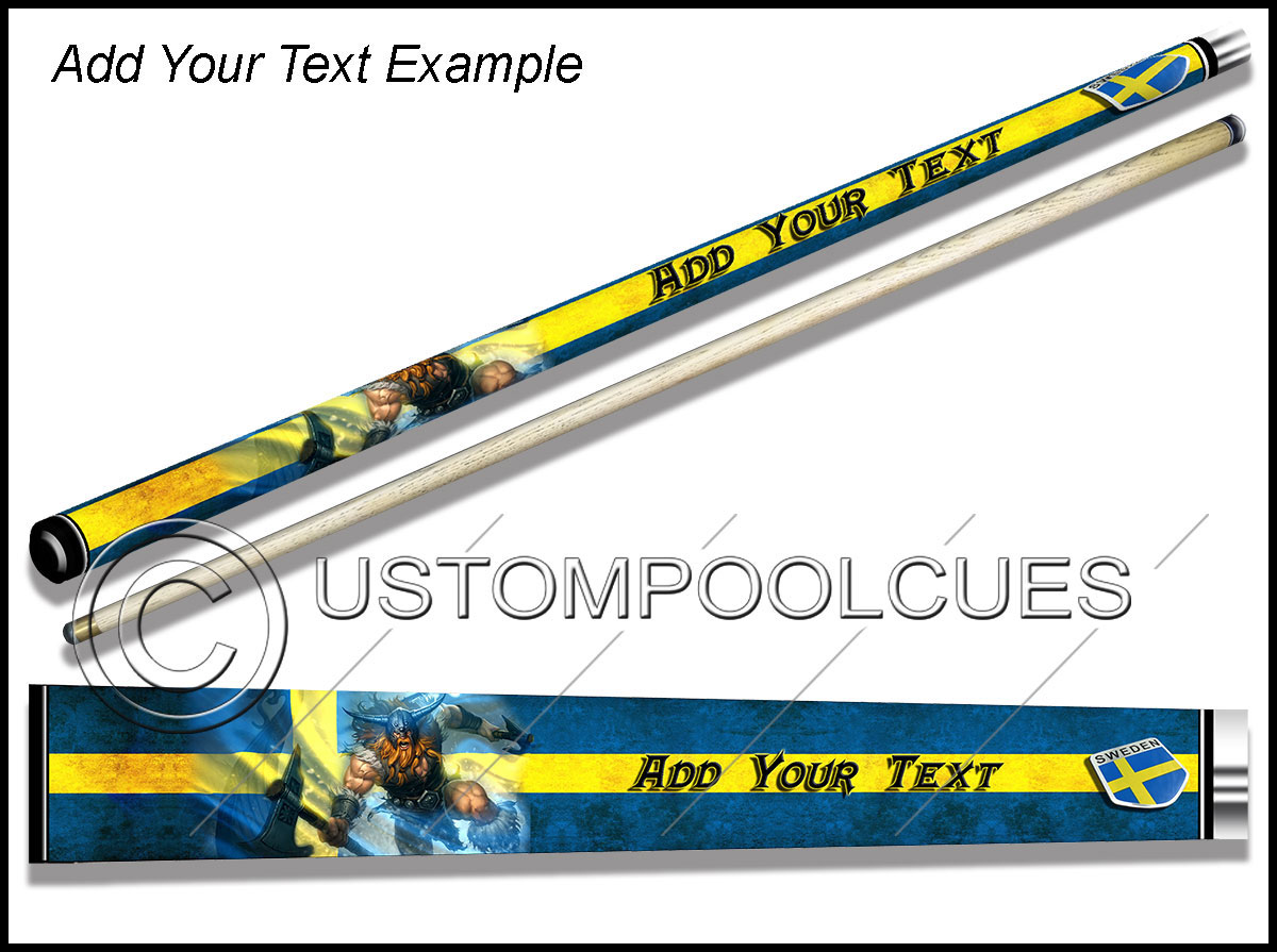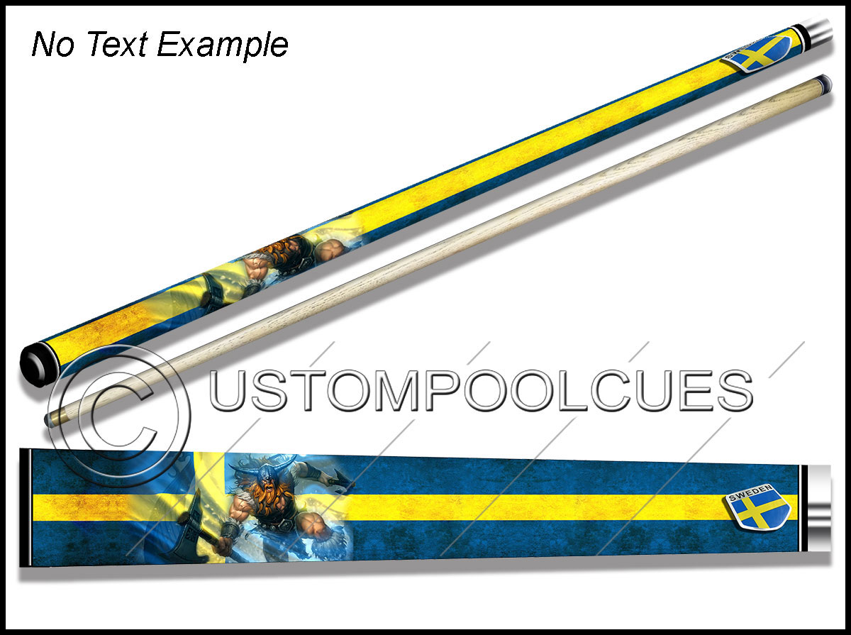 This printed vinyl design with additions will be applied & sealed to a quality tested 57″ two-piece ash cue with your chosen tip & weight options.