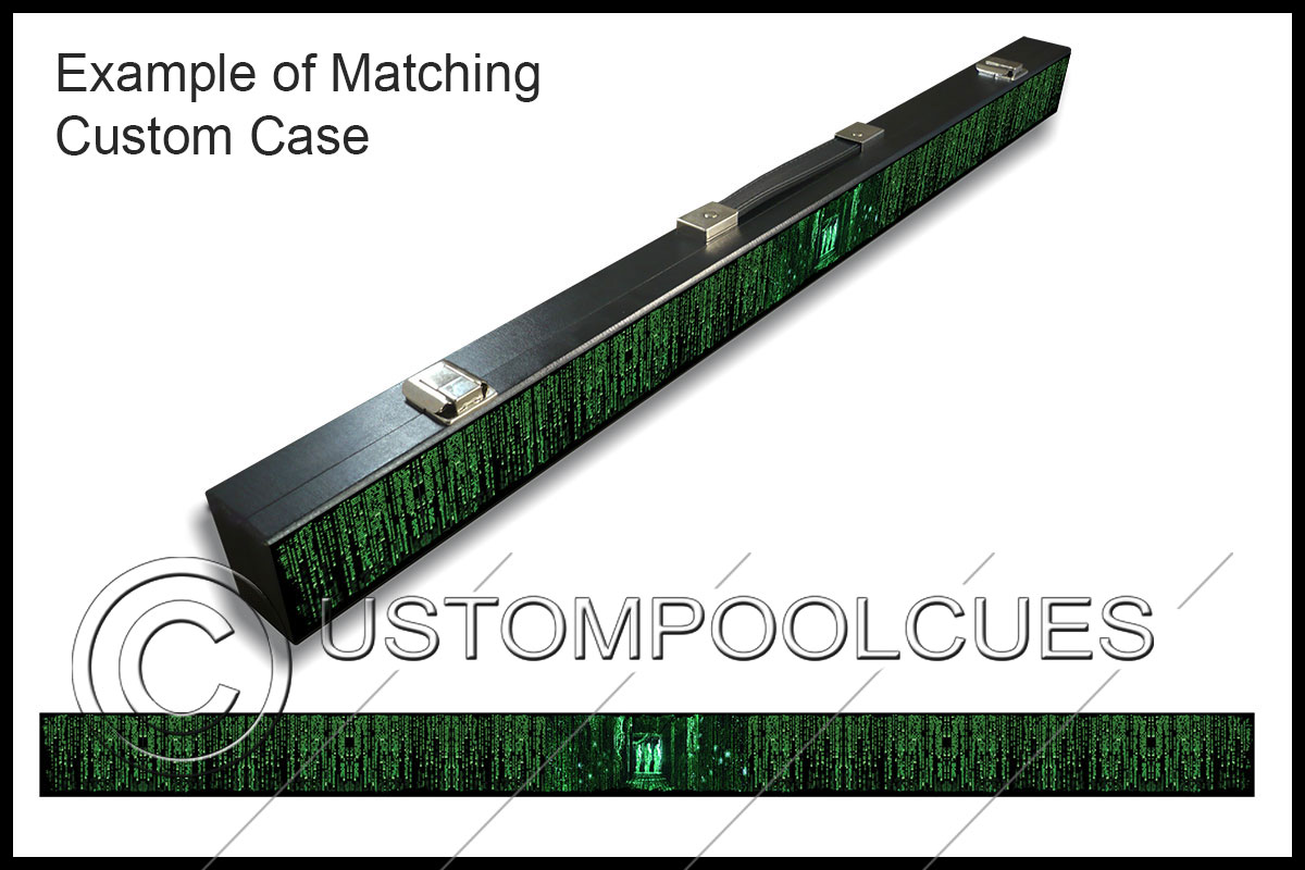 This printed vinyl design with additions will be applied & sealed to a quality tested 57″ two-piece ash cue with your chosen tip & weight options.