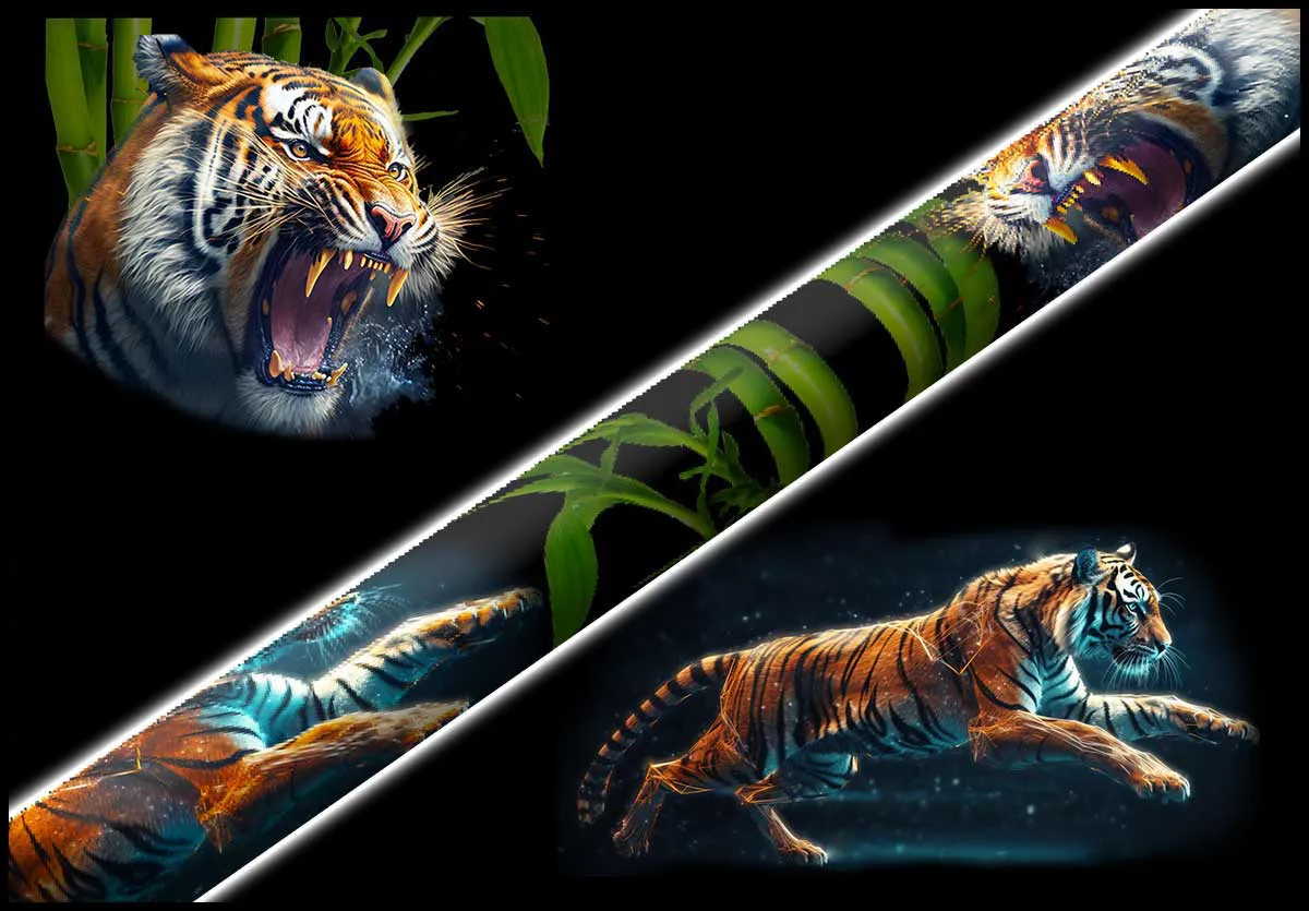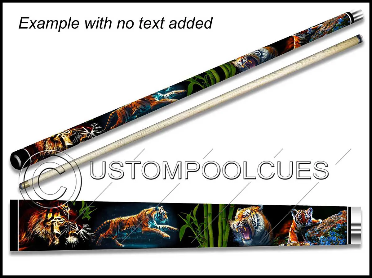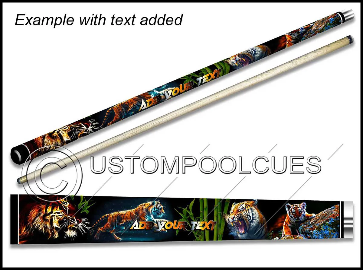 This printed vinyl design with additions will be applied & sealed to a quality tested 57″ two-piece ash cue with your chosen tip & weight options.
