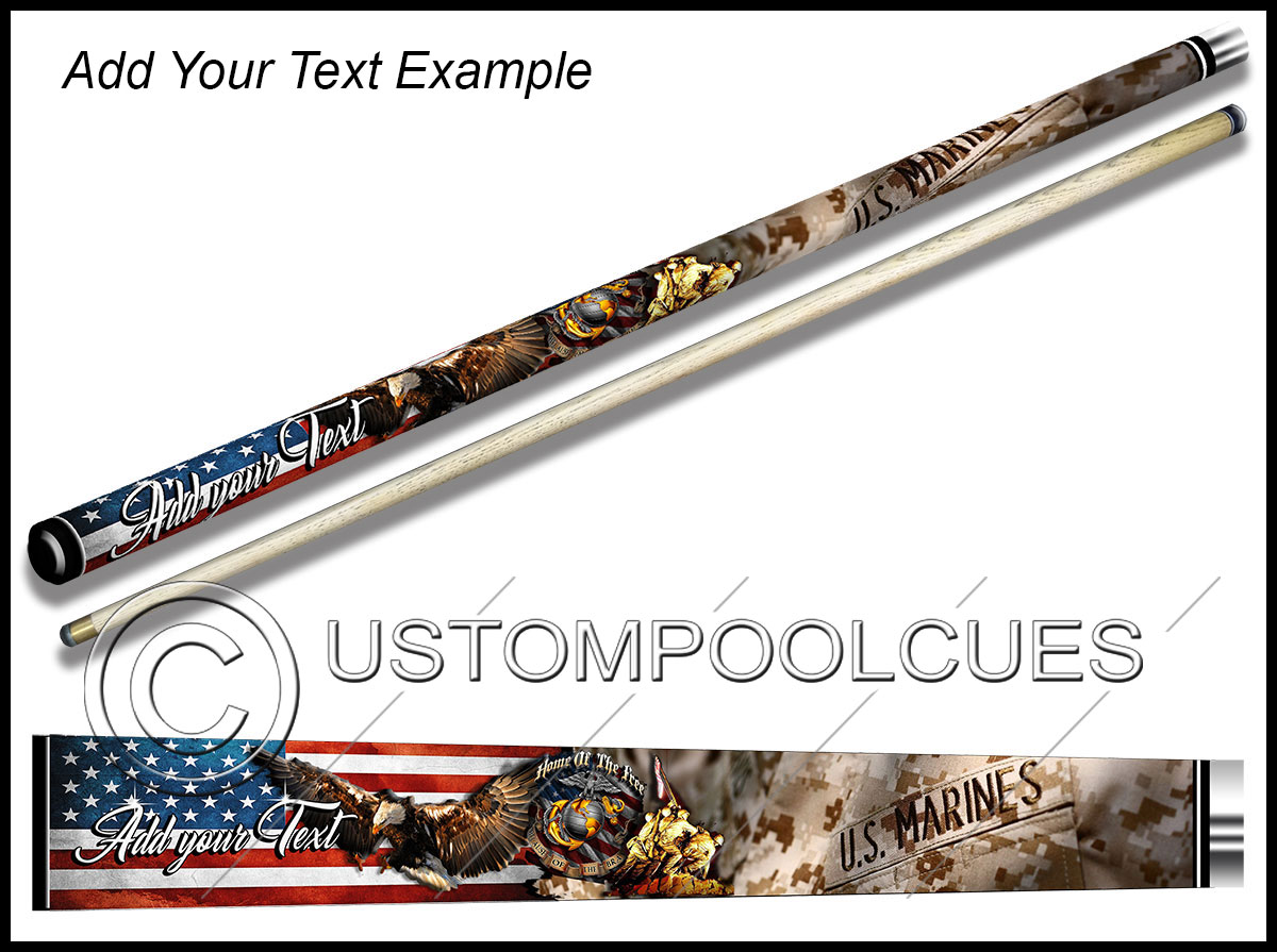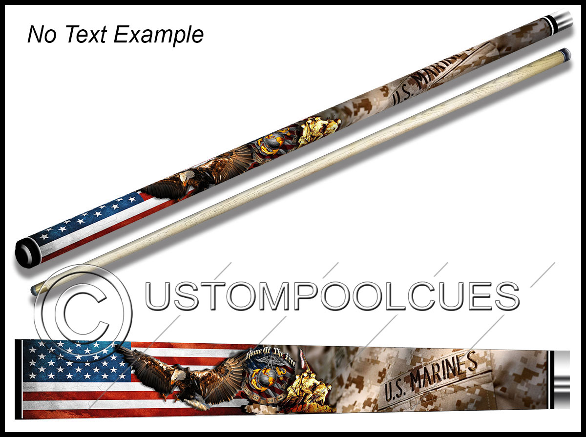 This printed vinyl design with additions will be applied & sealed to a quality tested 57″ two-piece ash cue with your chosen tip & weight options.