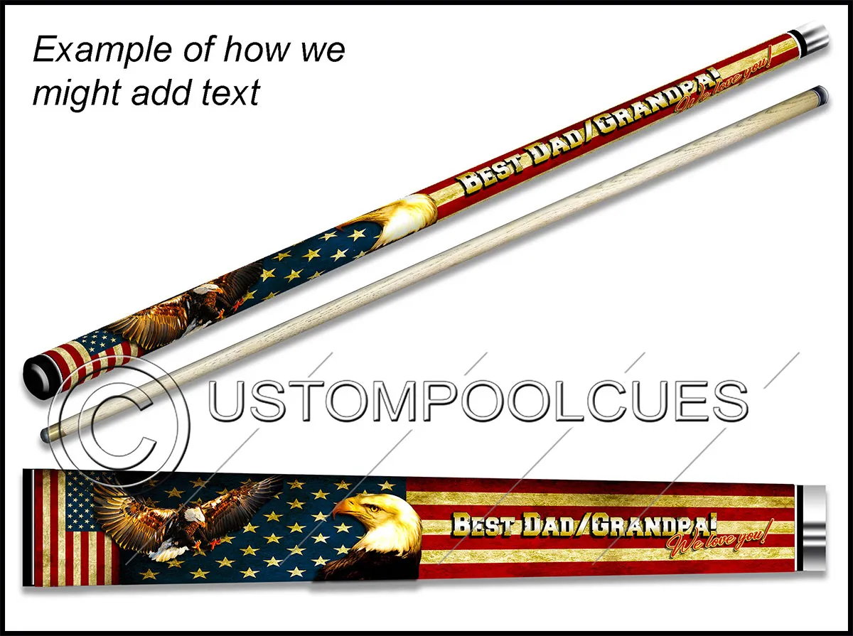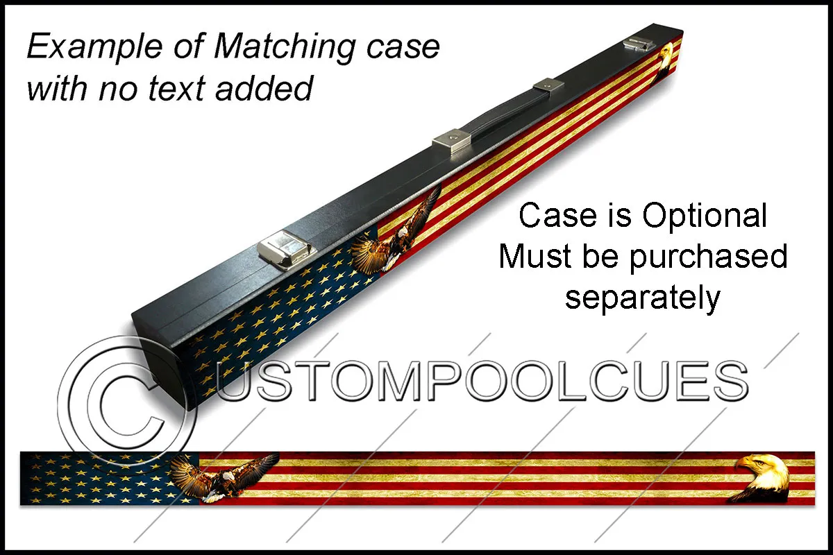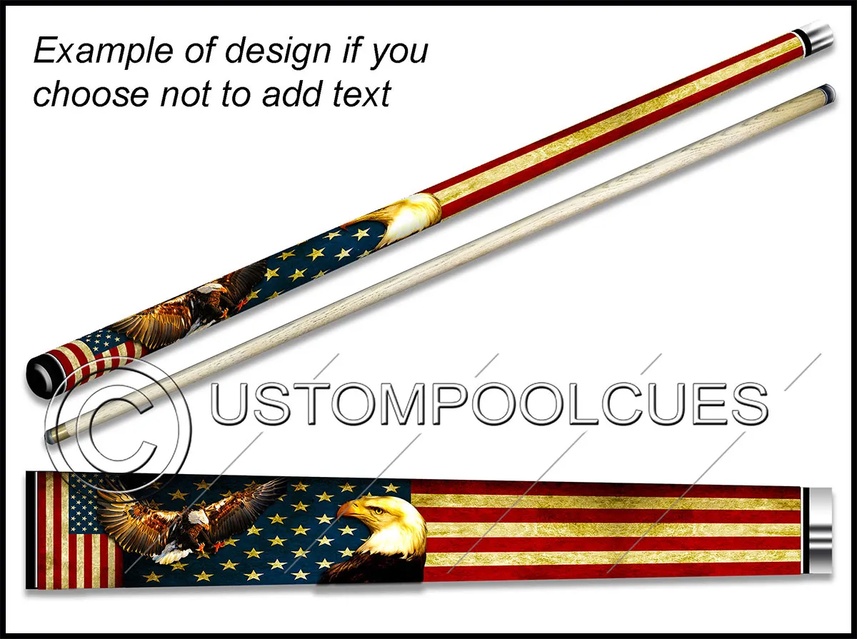 This printed vinyl design with additions will be applied & sealed to a quality tested 57″ two-piece ash cue with your chosen tip & weight options.