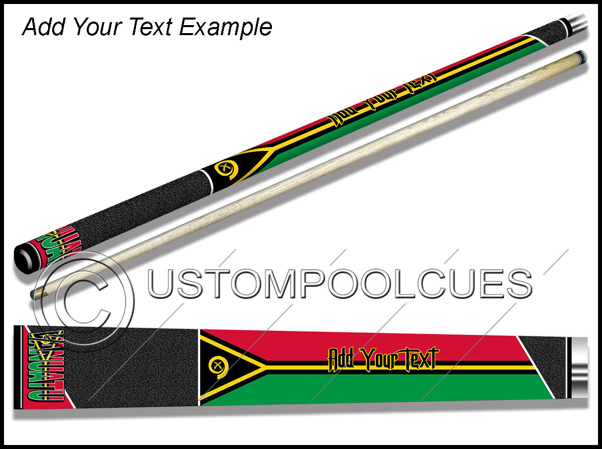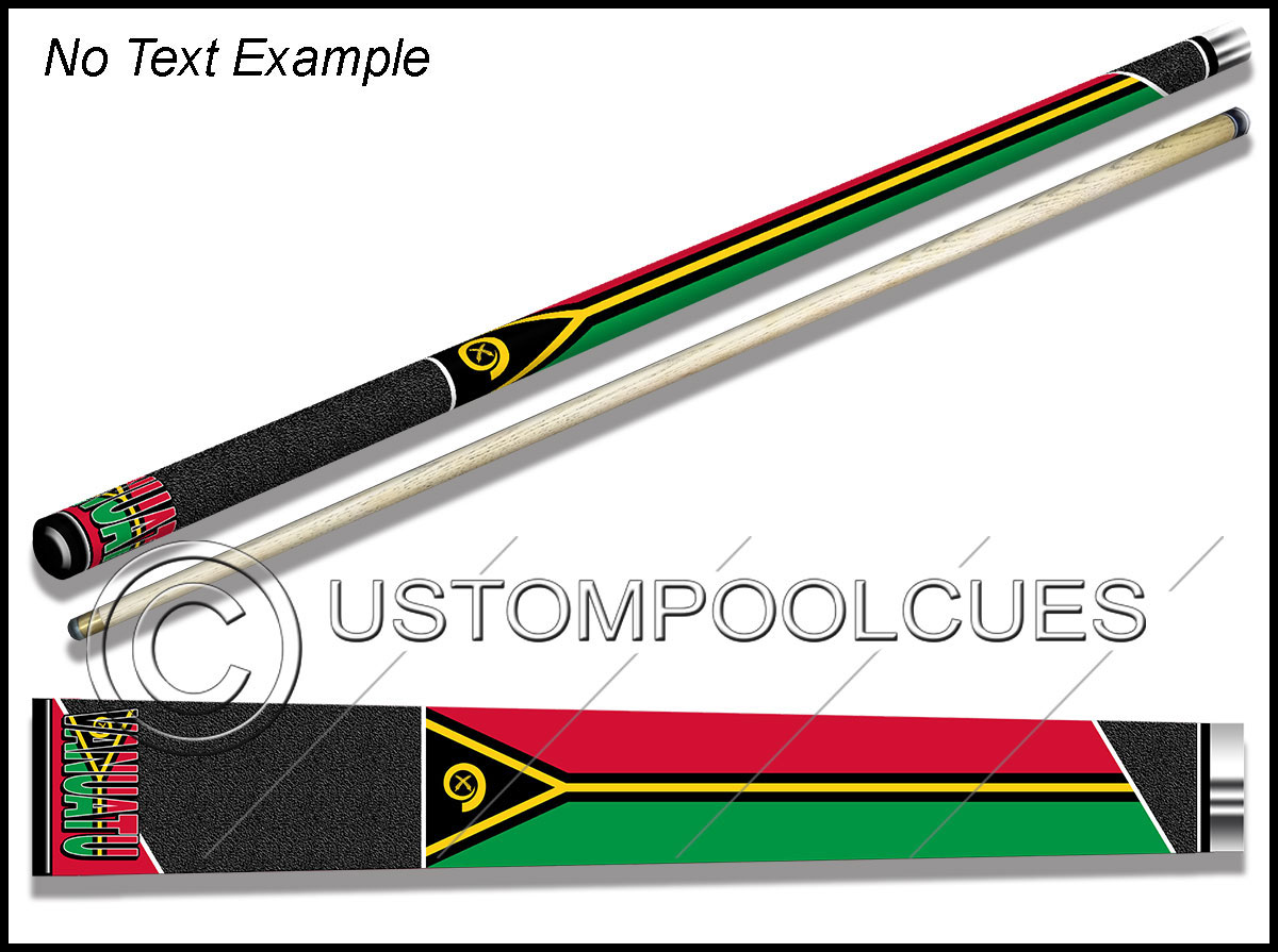 This printed vinyl design with additions will be applied & sealed to a quality tested 57″ two-piece ash cue with your chosen tip & weight options.