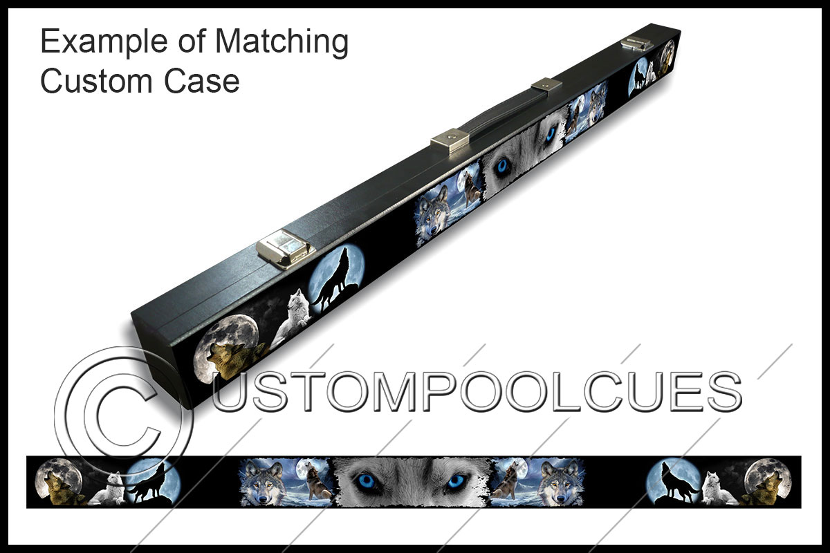 This printed vinyl design with additions will be applied & sealed to a quality tested 57″ two-piece ash cue with your chosen tip & weight options.