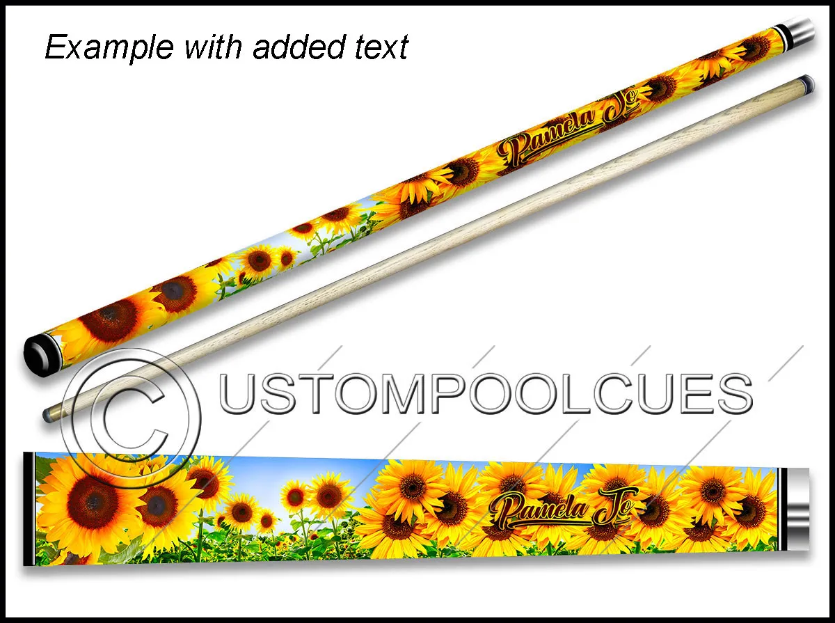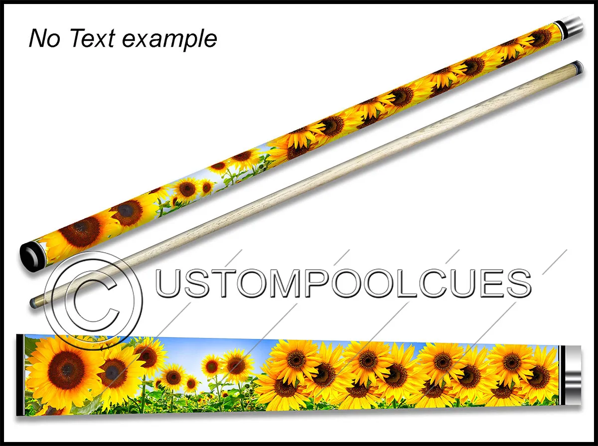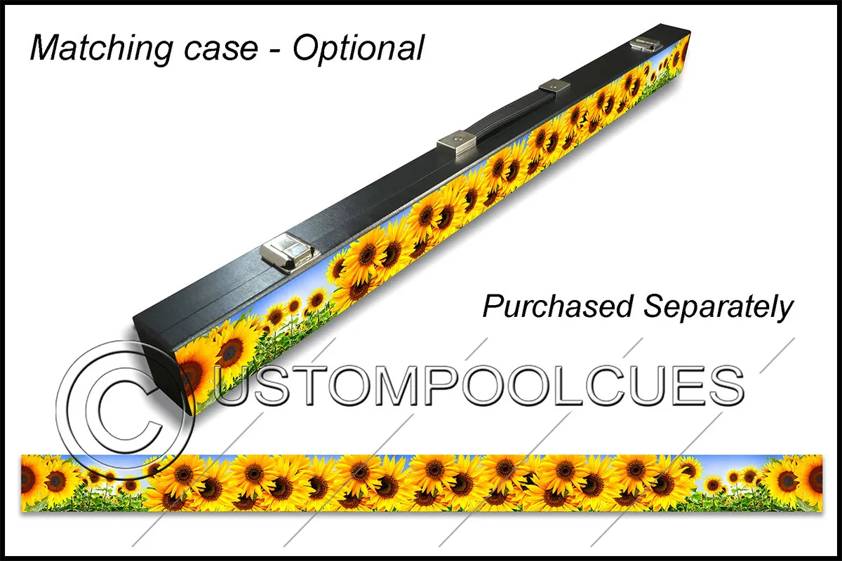 This printed vinyl design with additions will be applied & sealed to a quality tested 57″ two-piece ash cue with your chosen tip & weight options.